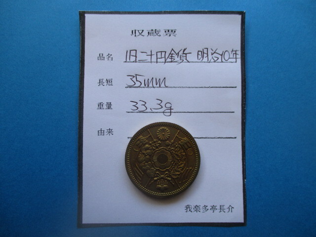古銭貧乏、涙の赤字出品! 旧二十円金貨 明治十年