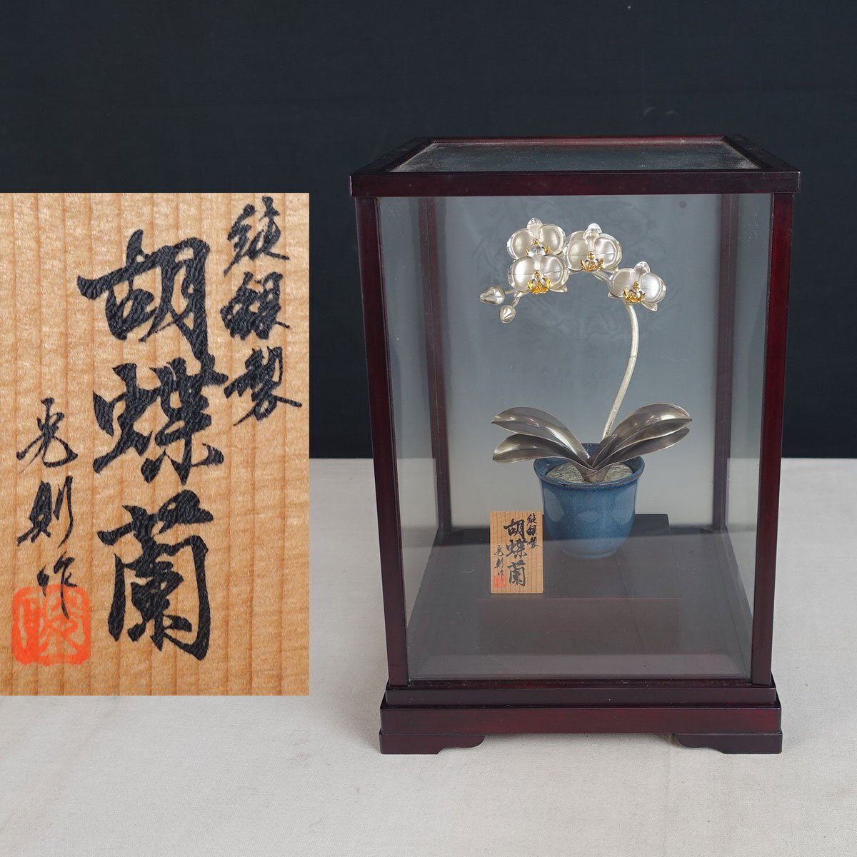 整理品 蔵壷◆『光則作 純銀製 胡蝶蘭』 1点 重さ(ケース含む):約1.341g 金属工芸 伝統工芸 東京銀器 銀工芸 大淵武則 金工作家 茶道具