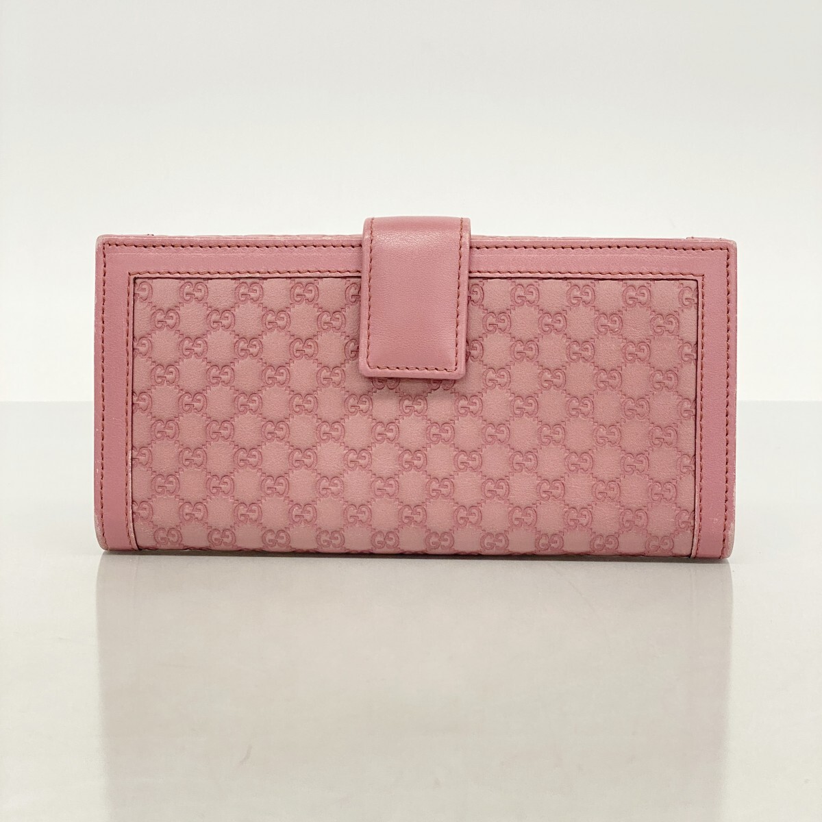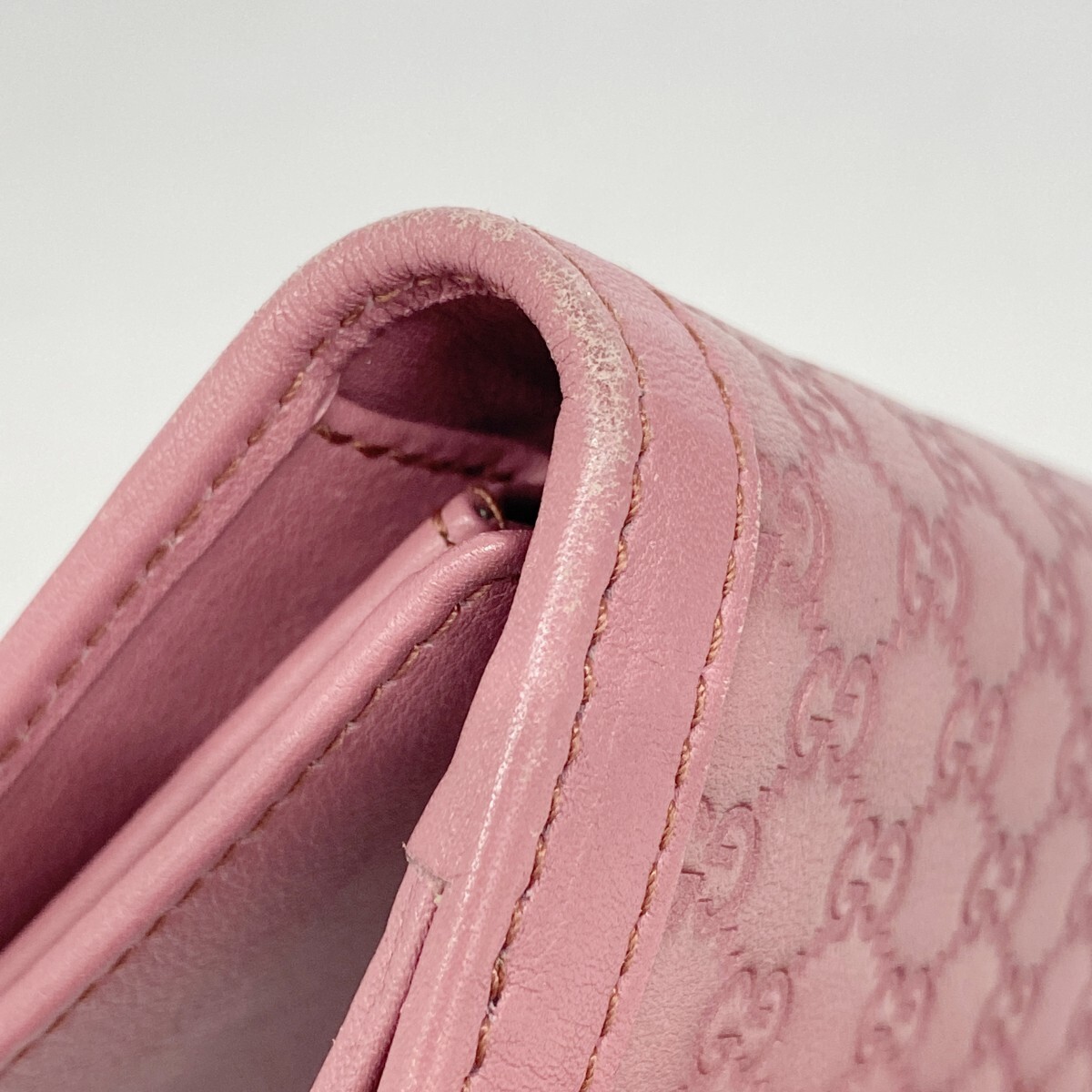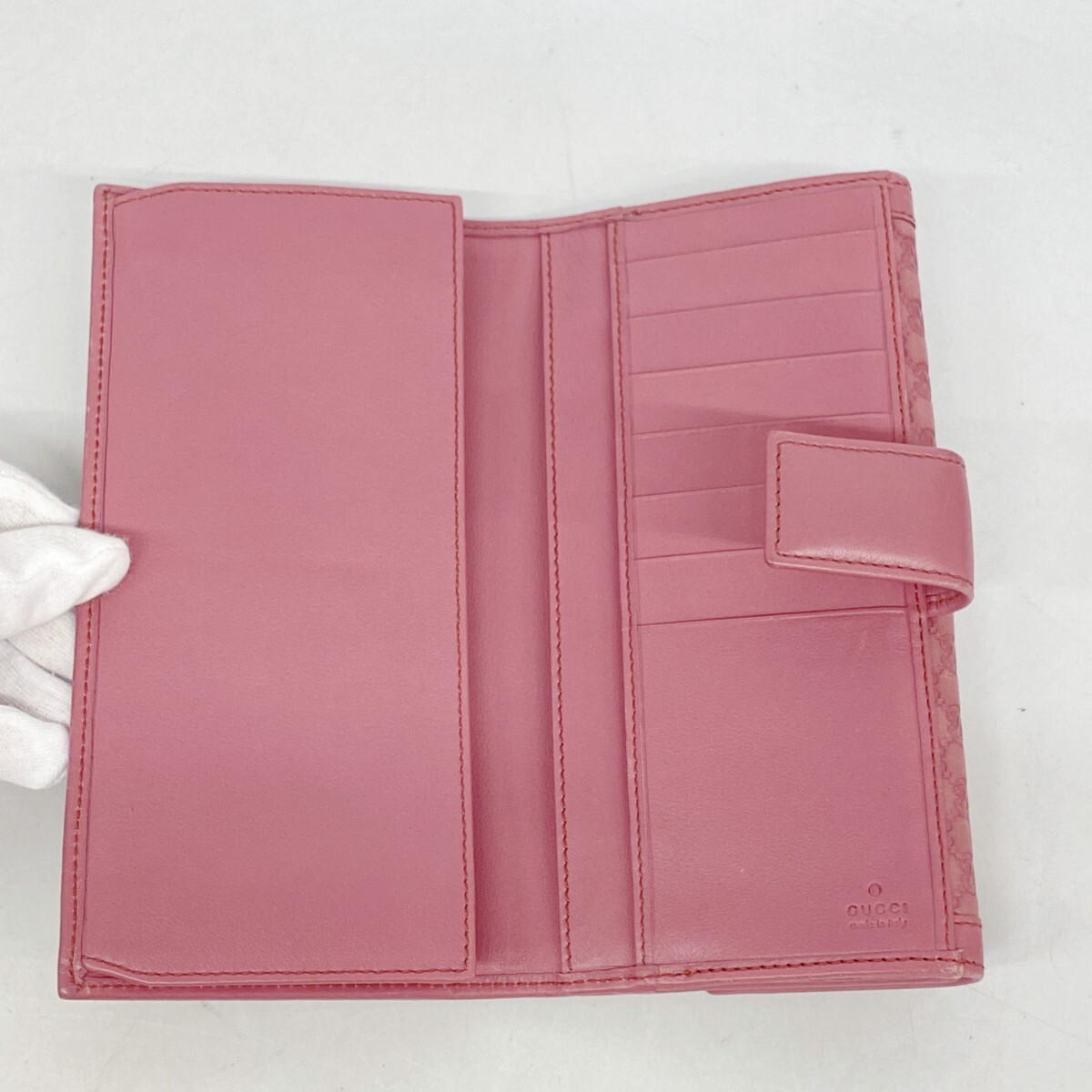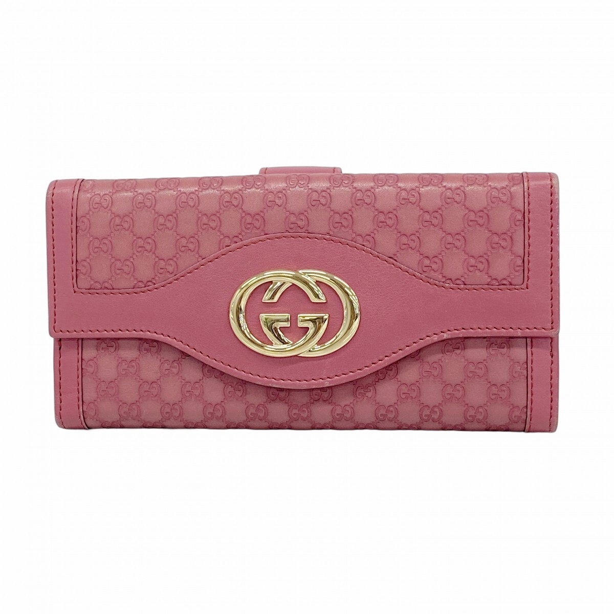 【5mb1953-h】グッチ 長財布 マイクログッチシマ インターロッキングG 282426 レザー ピンク シャンパンゴールド金具【中古】レディース