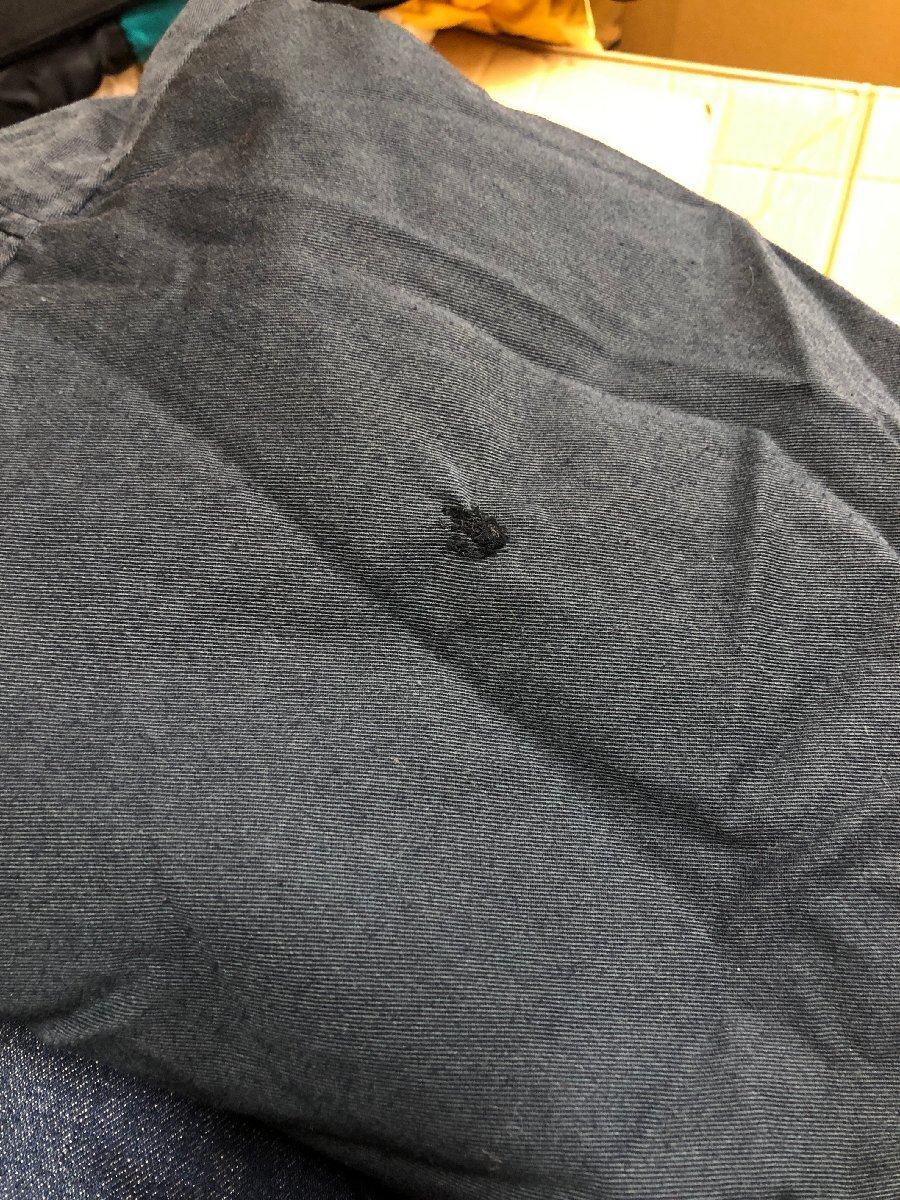 中古品です。使用感があります。裏地襟付近と右袖裏にリペア跡と薄汚れ、裏地に少しの毛玉がありますが、他に大きなダメージはありません。
