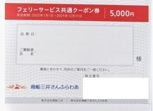 商船三井客船 株主優待券 (フェリーサービスクーポン券 5000円)1枚 ※にっぽん丸クルーズ優待券2枚付き   12/31迄