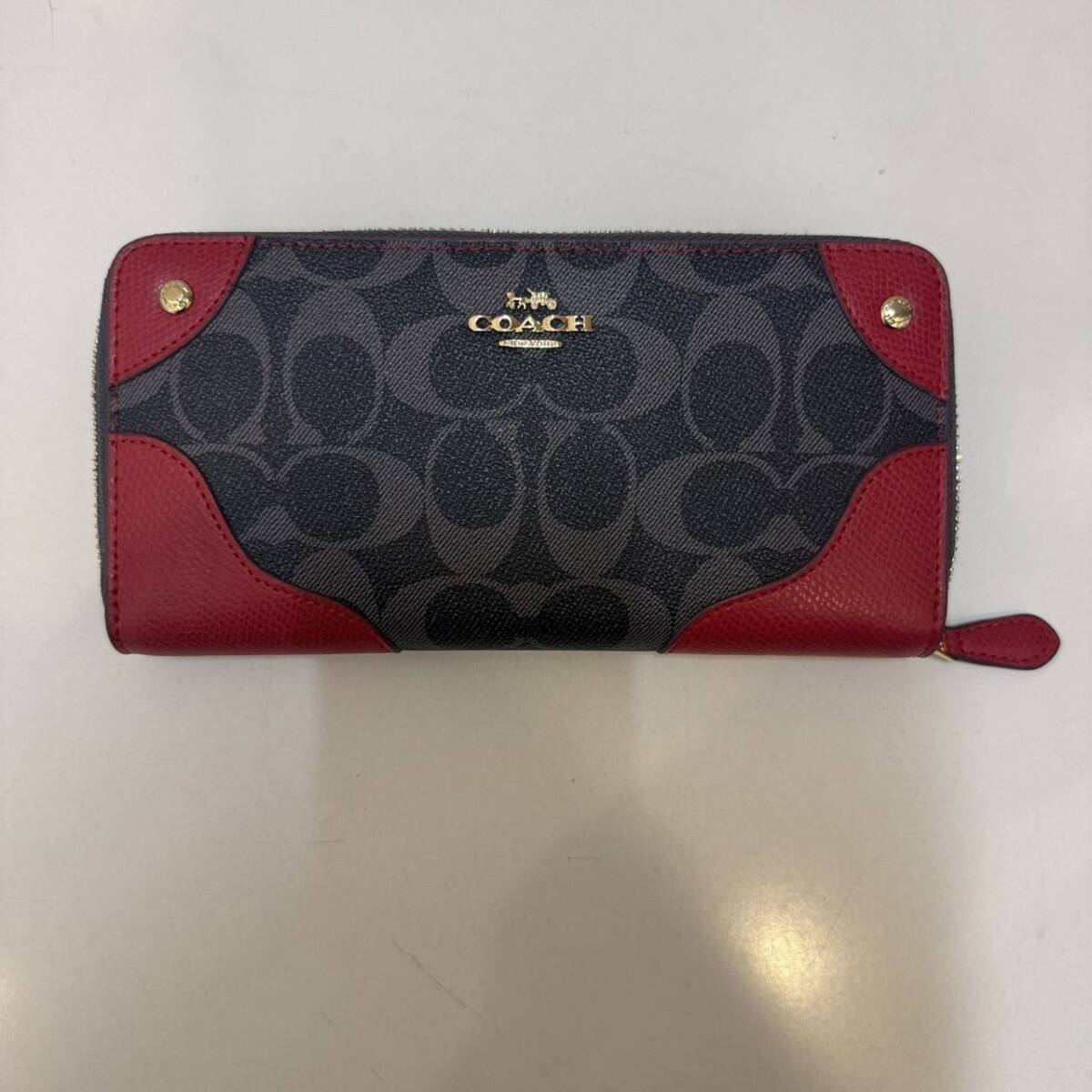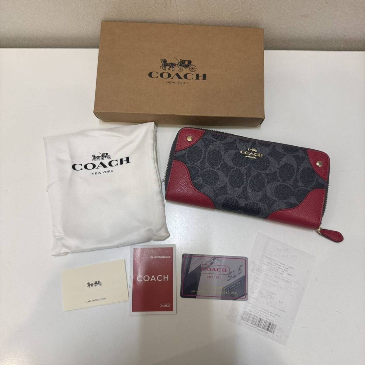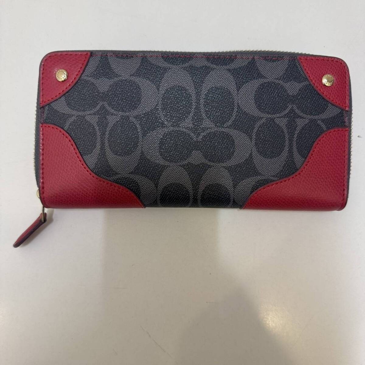 【TF0922】コーチ 財布 シグネチャー ブラック×赤 長財布 ウォレット COACH レディース