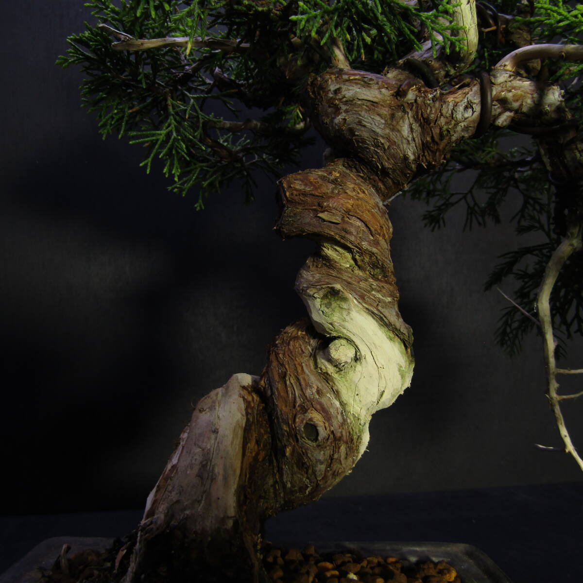 〇神舎利の削り込まれた幹による模様が味わい深いシンパクの盆栽、盆栽素材です。