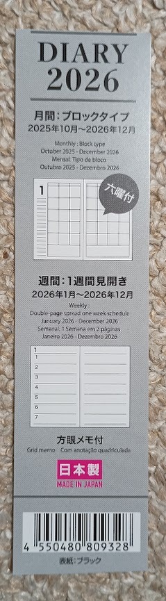 10月始まり ポケットサイズ 手帳 スケジュール帳