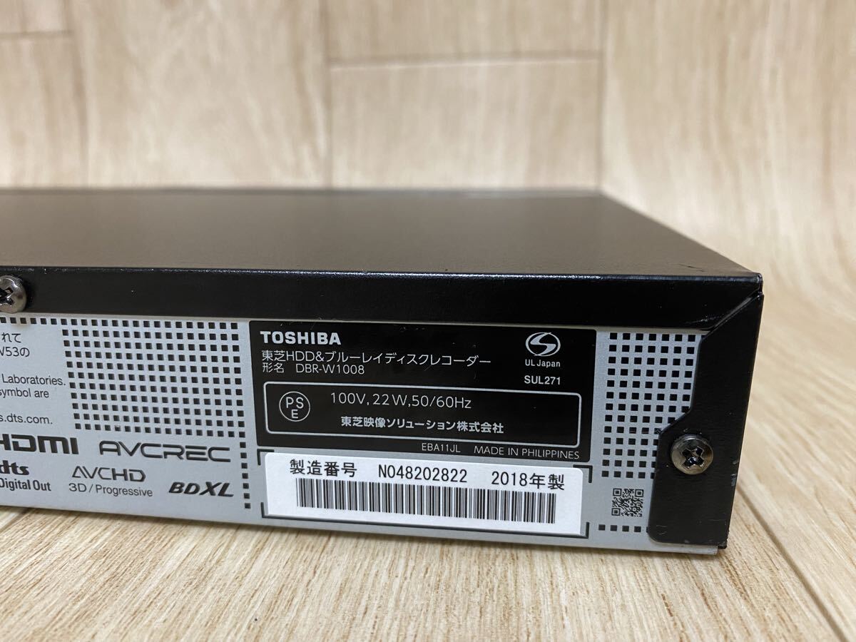 中古 TOSHIBA 東芝 REGZA DBR-W1008 ブルーレイディスクレコーダー 2018年製 / 本体のみ、BD再生確認済みですが、その他動作未確認/現状渡し、ジャンク品扱いでの出品です。