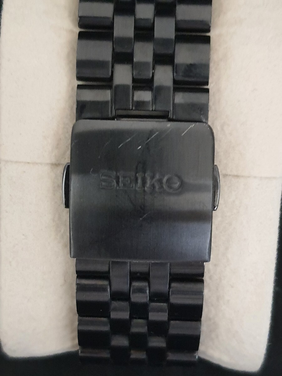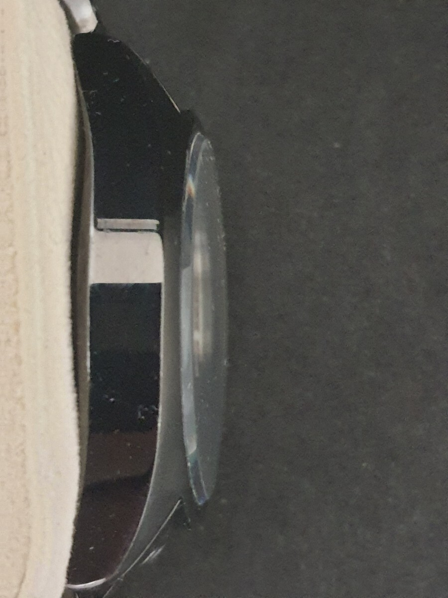 シンプルでミニマルな感じが気に入って、半年ほど前に中古で購入しましたが、一コマ分、私の腕には小さく、出番が少なくなっているので、使っていただける方にお譲りしたいと思います。ケースやブレスレット、ベゼルに小傷や擦り傷が見られます。風防にも薄い傷がありますが余り目立つような深い傷はないです。 バックル部分に傷がありますが、深いものではありません。具体的な傷の状態は写真でご確認ください。神経質な方は購入をご遠慮ください。