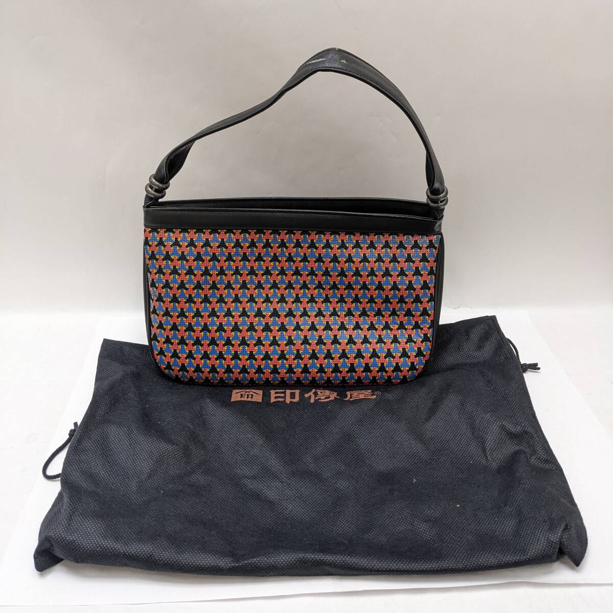 【16182】印傳屋 INDEN-YA インデンヤ ショルダーバッグ レッド/ブルー系 ワンショルダーバッグ ハンドバッグ 総柄 レディース 鞄 | ||