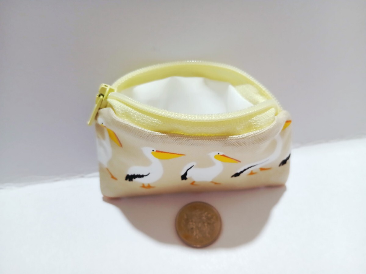 小銭入れや、小物まとめなどに便利な、手のひらサイズのフラットミニポーチを作りました
