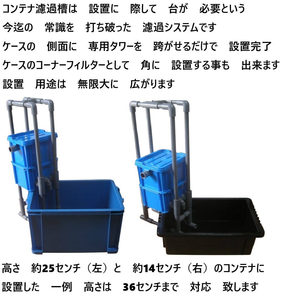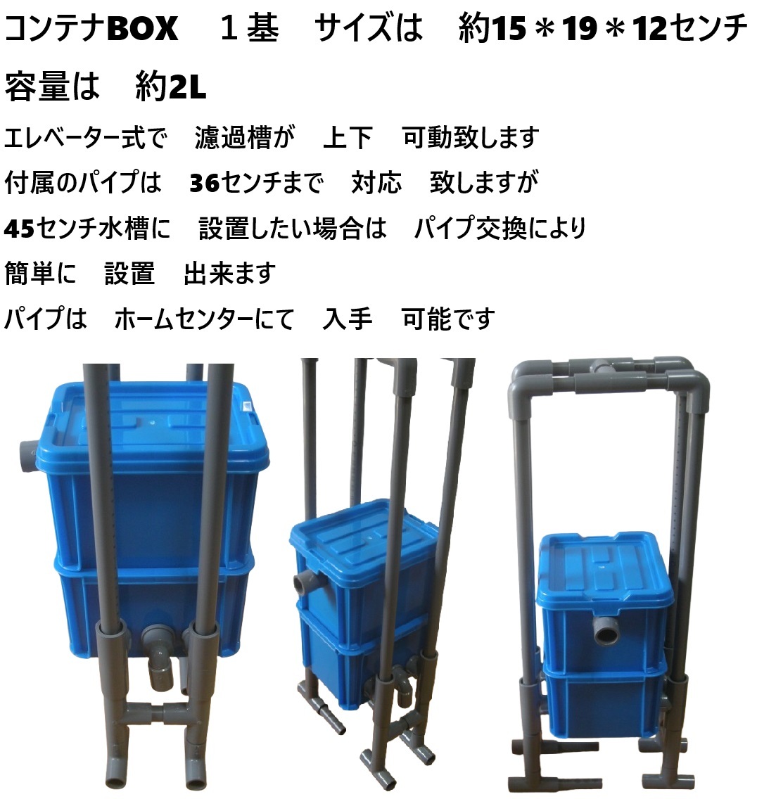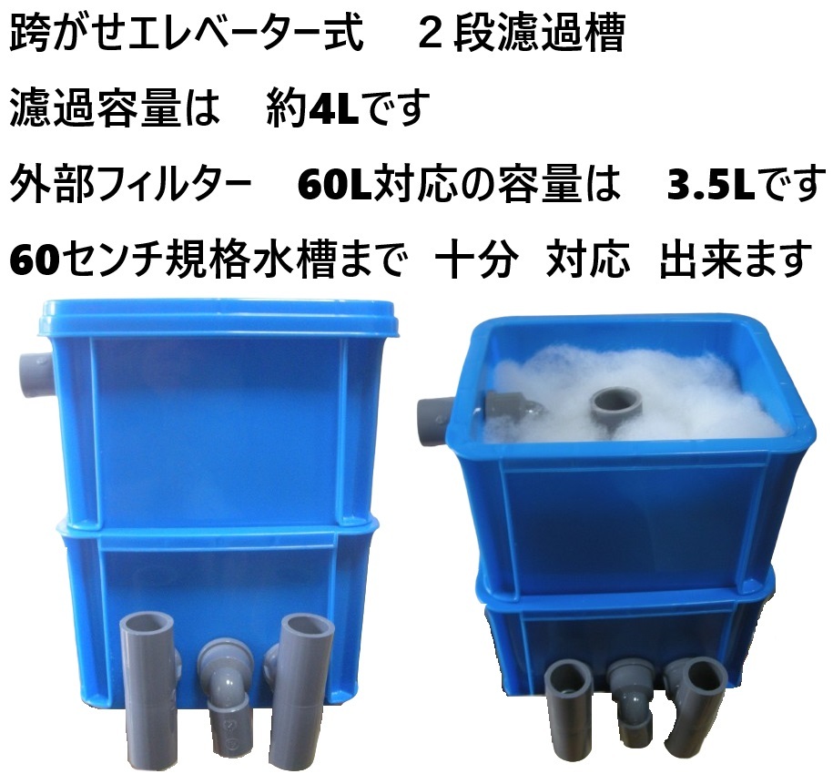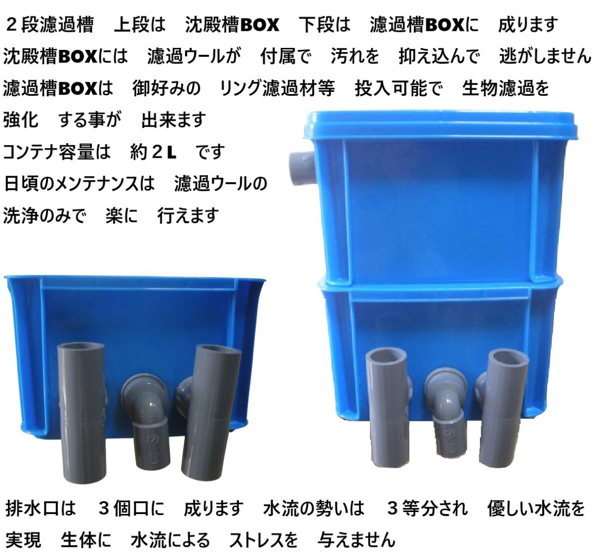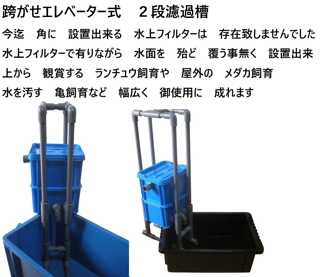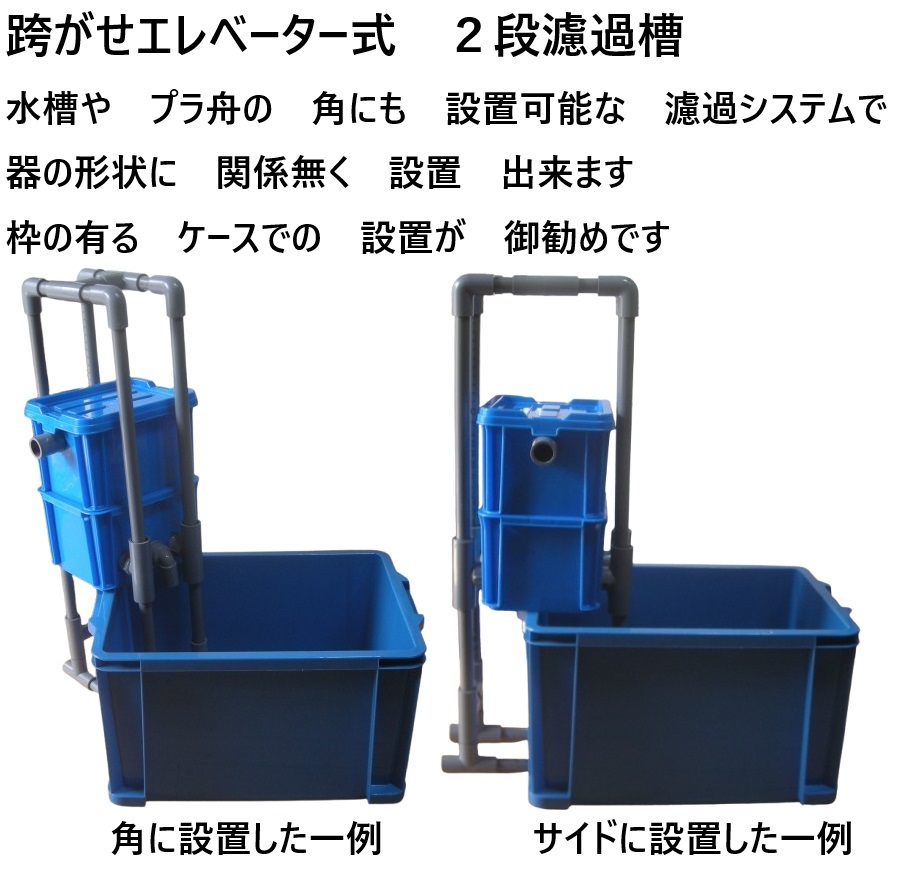 プラ舟 小型ケース対応 跨がせエレベーター式 × 沈殿槽BOX 搭載 2段濾過槽  13