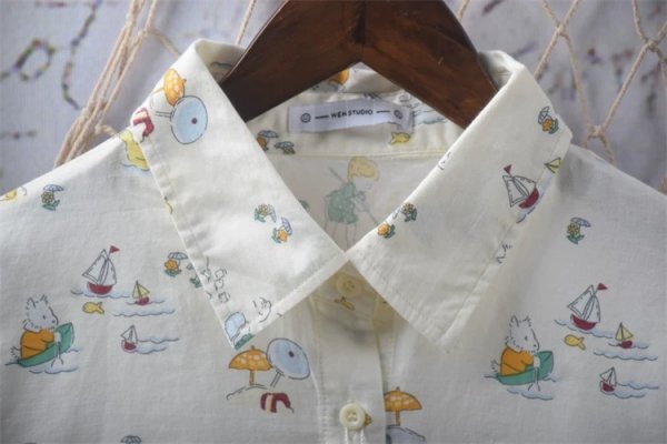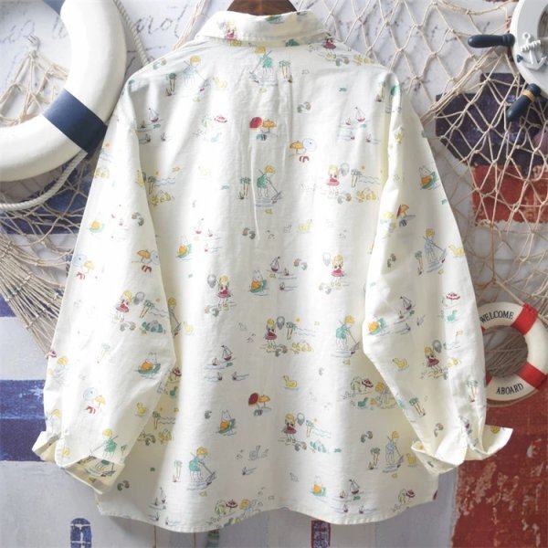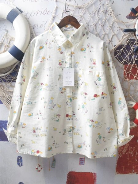 rm 2508 ブラウス フリーサイズ ワイシャツ チュニック トップス 綿100% 大人可愛 ナチュラル サラサラ 通気性肌触り抜群 プリント柄1