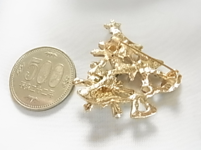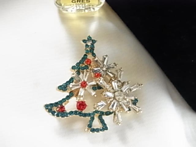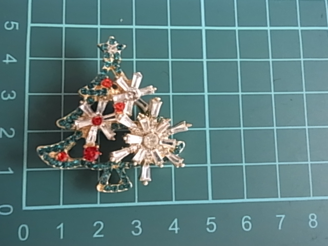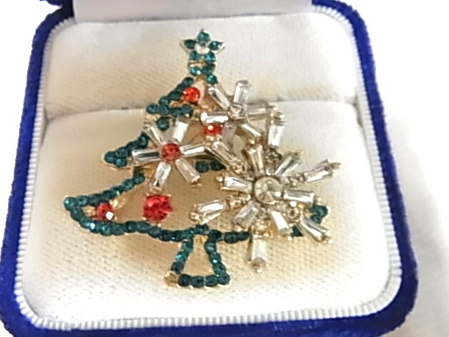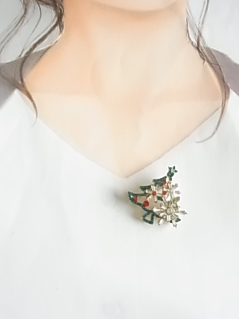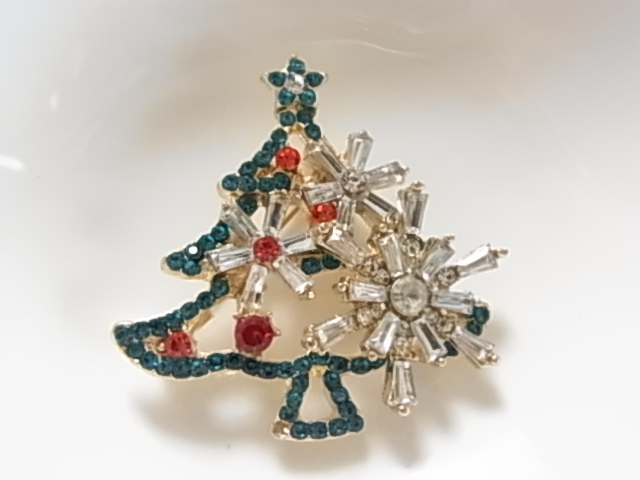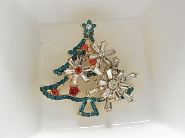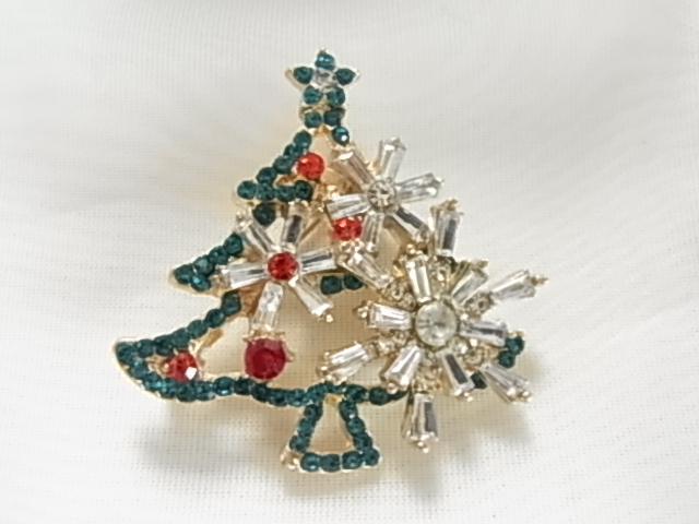 新品未使用品 キラキラ系 クルスマスツリーモチーフ Xmas 雪の結晶とツリーが可愛らしい印象 ストーン1つ欠 ブローチ♯