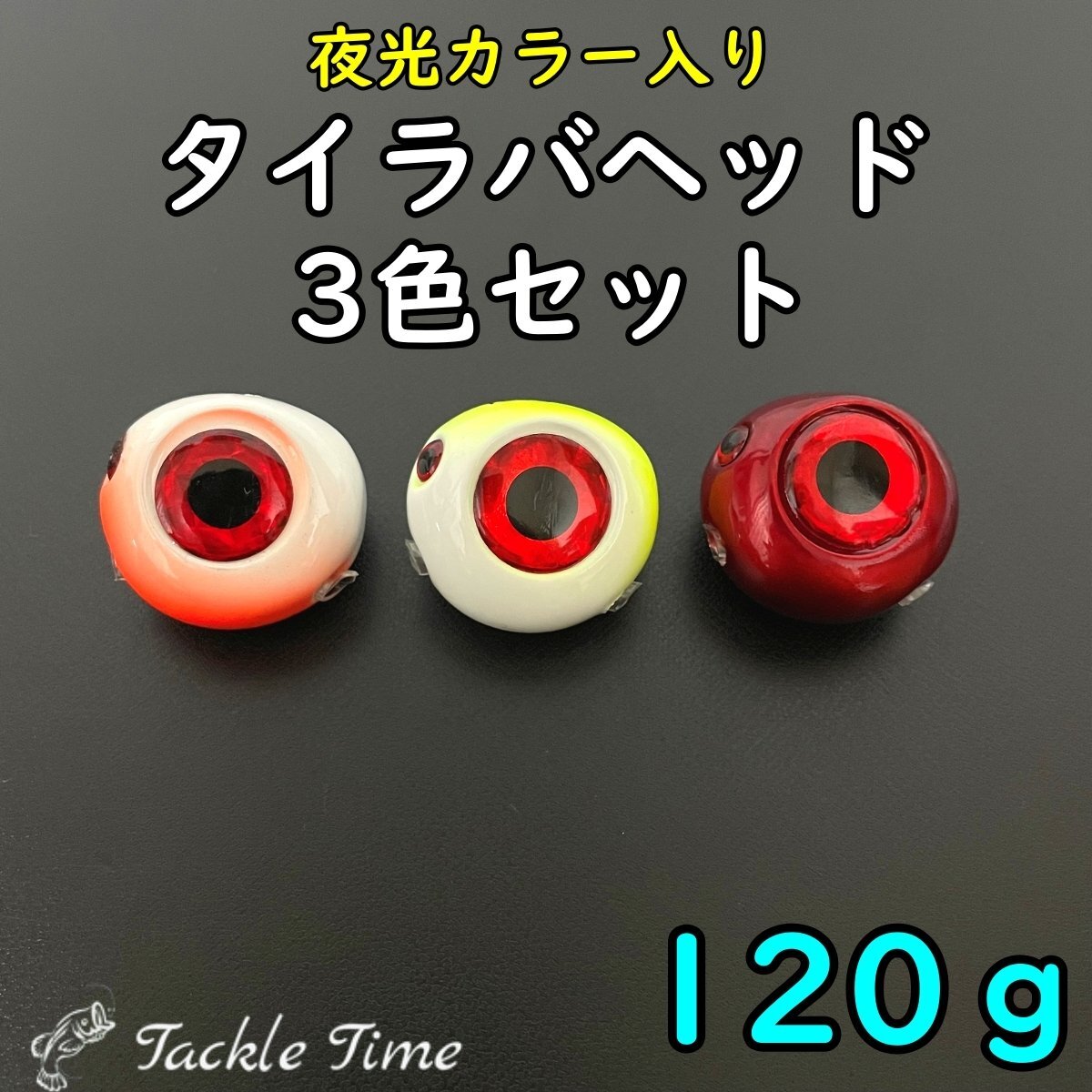 タイラバ 鯛ラバ ヘッド 120g 3色 セット グロー 夜光 遊動式 誘導式 マダイ 真鯛 青物 ヒラメ ショア オフショア 釣り 鉛 タックルタイム