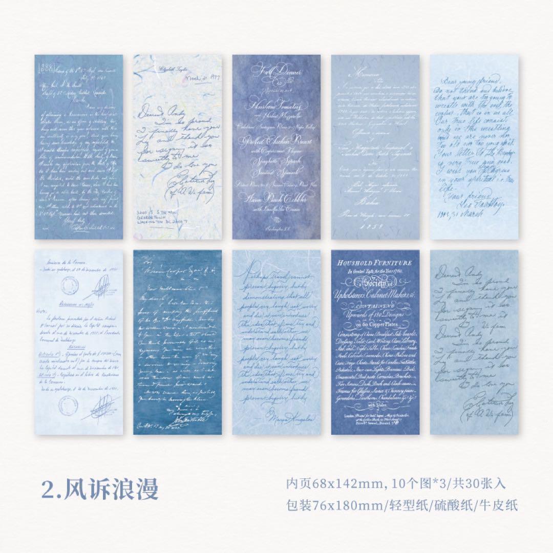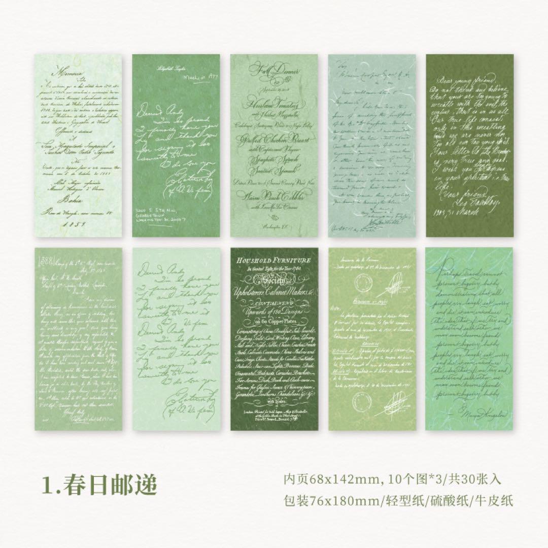 硫酸紙、軽型紙、クラフト紙の3種類の紙質が楽しめる、英文デザインの素材本セットです。
