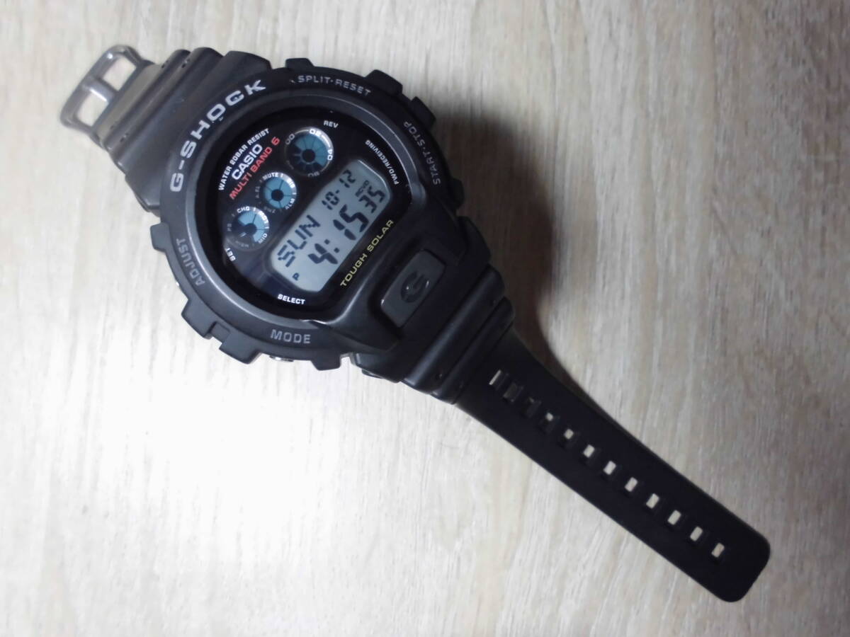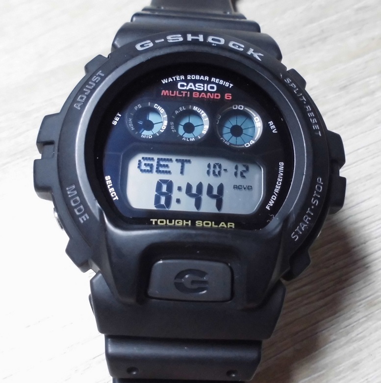 様々なコラボレーションモデルに採用され、ストリートファッションなどで人気のDW-6900が、世界6局の標準電波を受信するマルチバンド6を搭載。デザイン・ケース径はそのままに、電波ソーラー化を実現しました。蛍光灯のわずかな光で駆動し、日本(2局)、中国、アメリカ、イギリス、ドイツの6局の標準電波を受信します。また、液晶を従来モデルより大きくし、視認性を向上させました。シンプルなカラーリングで、ベーシックなデザインに仕上げています。 中古です。写真の時計だけの出品です。1枚目の写真を見てもらうとわかると思いますが、GET表示されていますので電波受信OKです。写真撮影時はバッテリーがフル充電の状態で、ライトが点灯し動作中です。中古なのでコキズはありますが良い状態です。 |