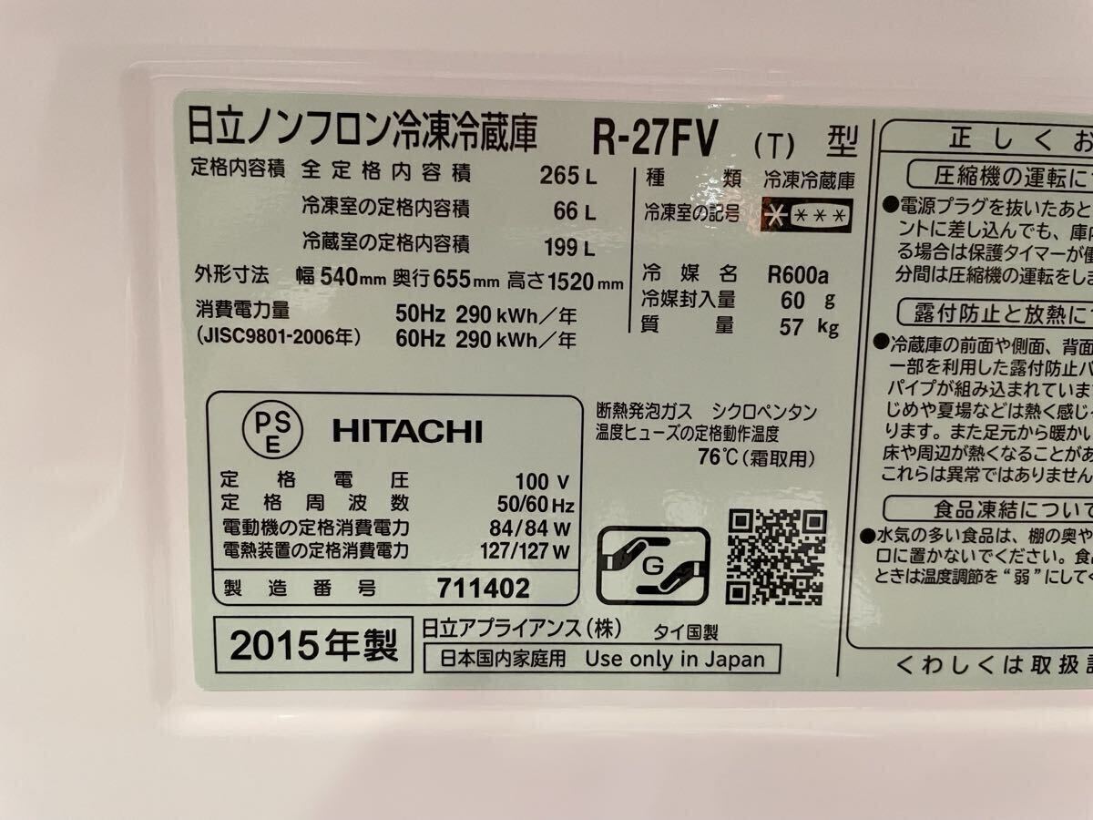 全定格内容量 265L(冷蔵199L 冷凍66L)