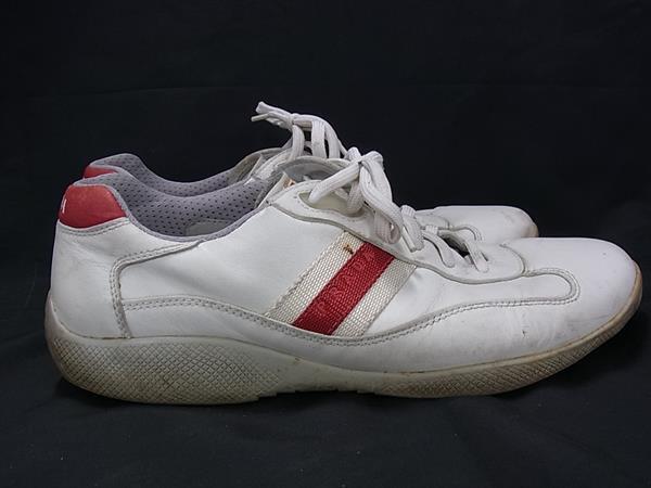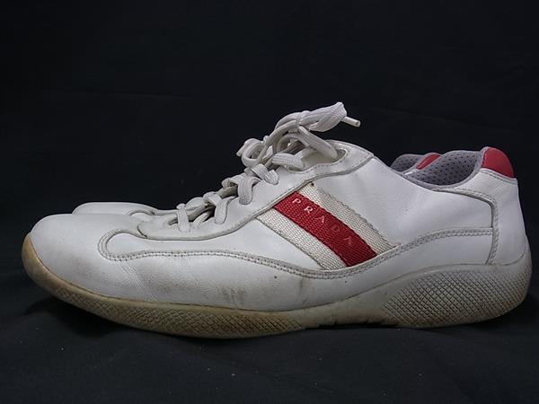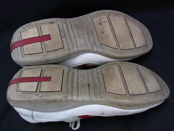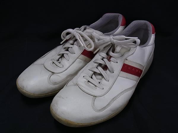 1円 PRADA プラダ プラダスポーツ レザー スニーカー 表記サイズ 7 (約26cm) 靴 シューズ メンズ ホワイト系×レッド系 BR0476