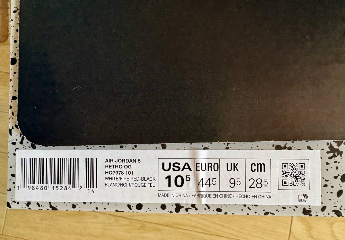 【新品未着用28.5cm】NIKE AIR JORDAN 5 RETRO OG FIRE RED Black Tongue HQ7978-101 正規品付属品完備 SLUMDUNK流川楓 US10.5