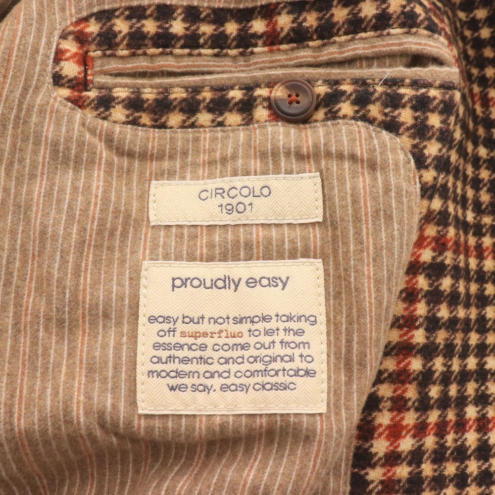 CIRCOLO チルコロ1901 トレンチコート 長袖 アウター 襟 ベルト付き チェック柄 メンズ 46 (S〜M相当) マルチカラー ブラウン系 付属品:写真のものが全てです ●表記サイズ:46 ○実寸 着丈:95.2cm 身幅:52.2cm 裄丈:81.7cm ⇒ アパレル商品のカラー基準・採寸方法・海外サイズ換算表 (参考)トルソー(マネキン)は男女ともMサイズです。 素材:表地:綿95%ポリウレタン5% 裏地(身頃):綿100% 裏地(袖):アセテート56%レーヨン44% | ||||||||||||||||