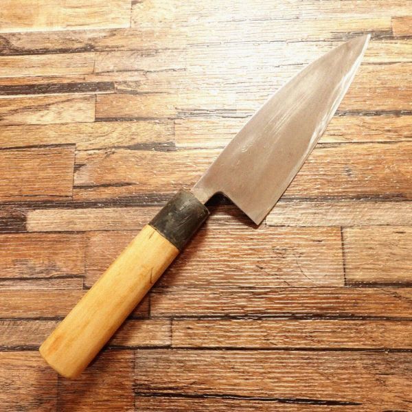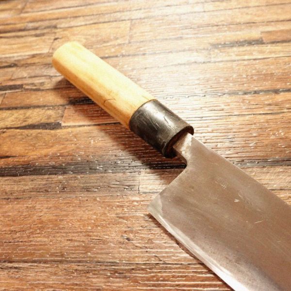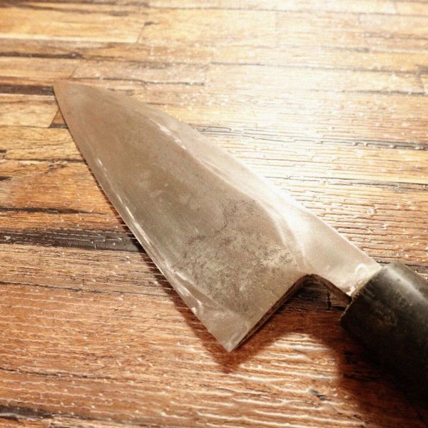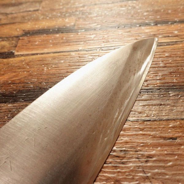 出刃包丁は魚をさばくために特化した和包丁で、刃厚があり骨の処理にも向いています。お手入れされながら使われてきたお品でしょう。まだまだ活躍させてい上げてほしいお品です。
