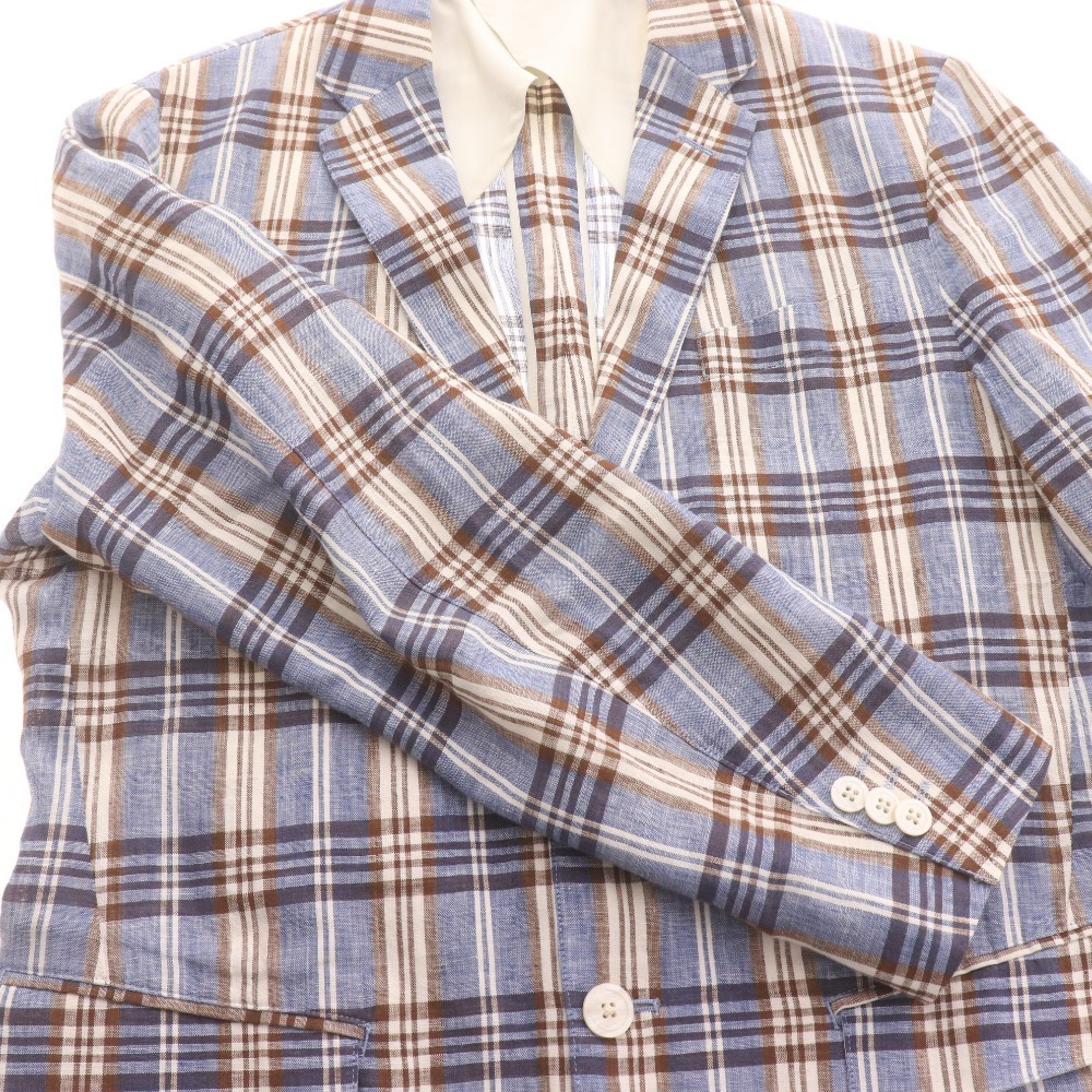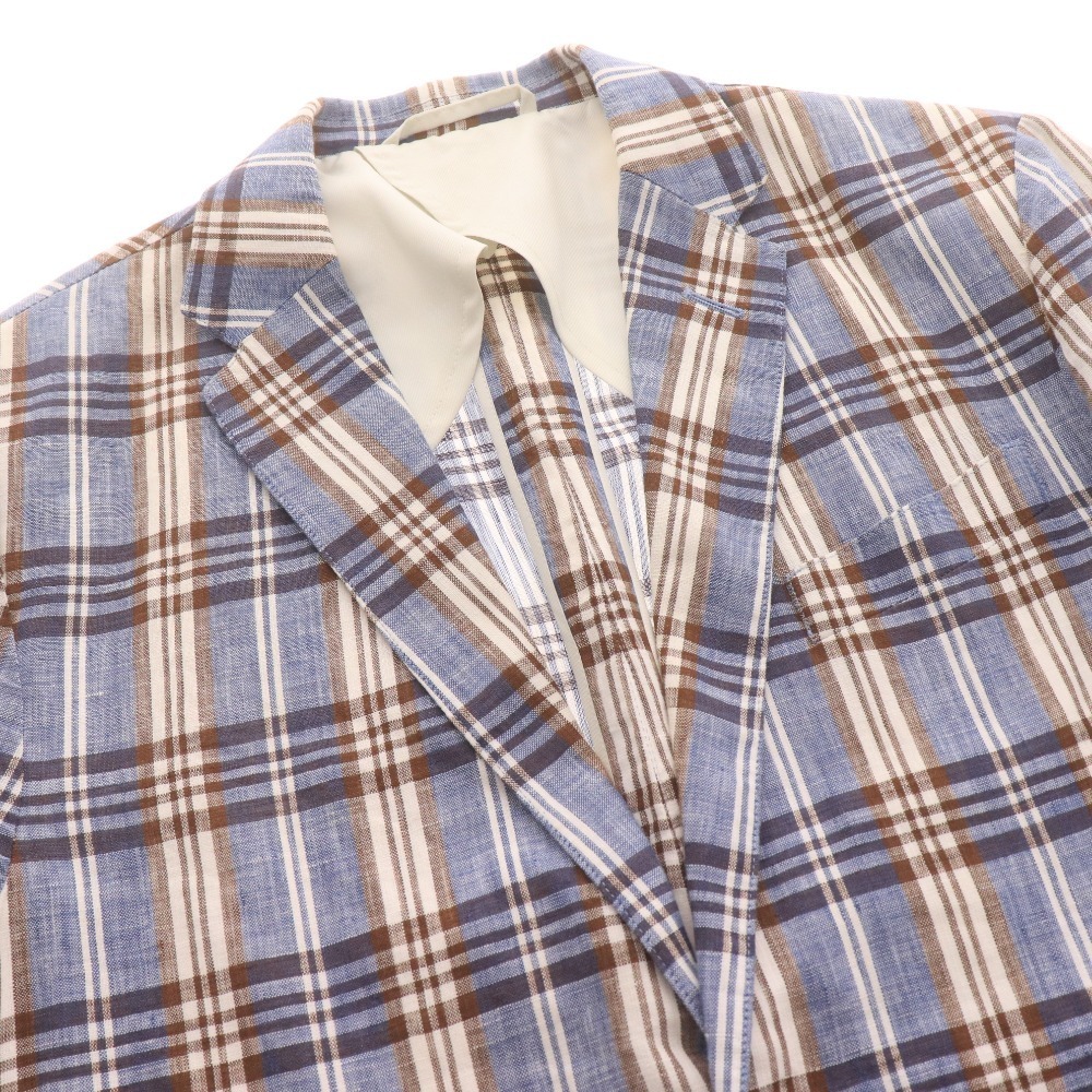 BEAMS HEART ビームス ハート テーラードジャケット 長袖 アウター 襟 チェック柄 メンズ 46(S〜M相当)マルチカラー ライトブルー 等 付属品:写真のものが全てです ●表記サイズ:46 ○実寸 着丈:74cm 肩幅:44cm 身幅:52.5cm 袖丈:58.5cm ⇒ アパレル商品のカラー基準・採寸方法・海外サイズ換算表 (参考)トルソー(マネキン)は男女ともMサイズです。 素材:表地:麻100% 裏地:ポリエステル100% | ||||||||||||||||
