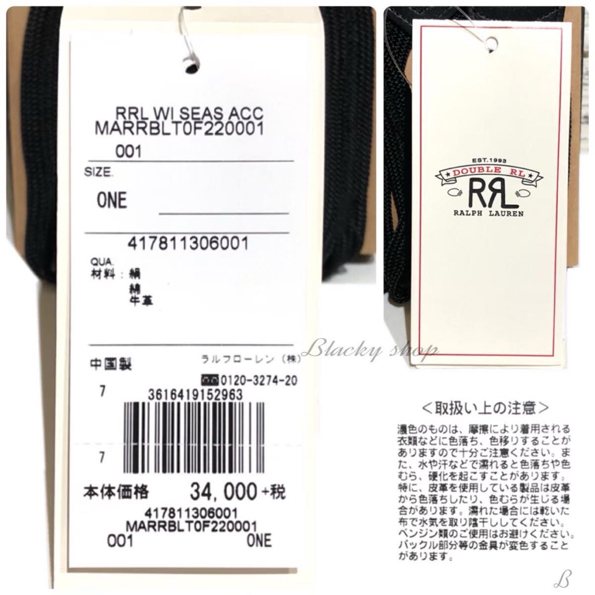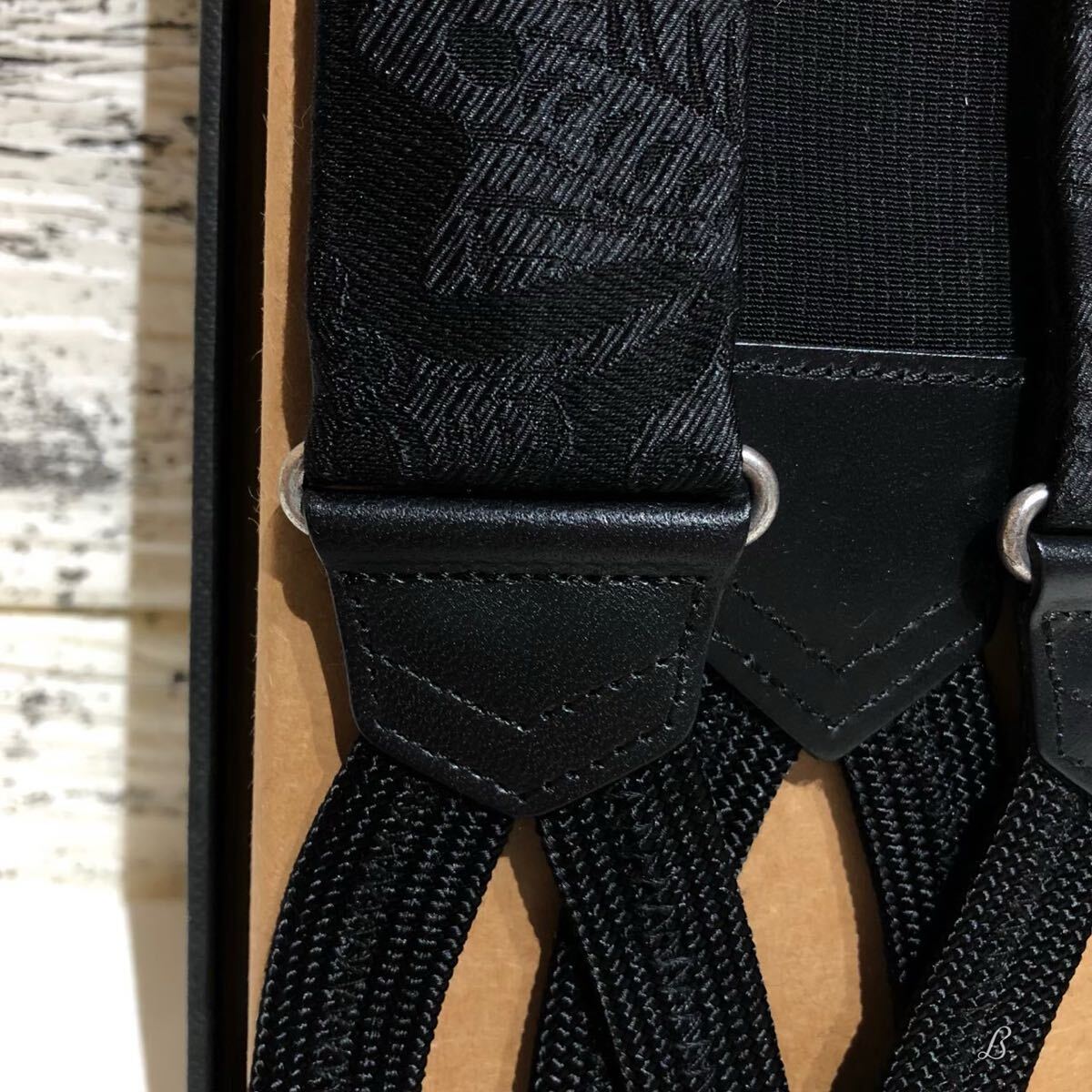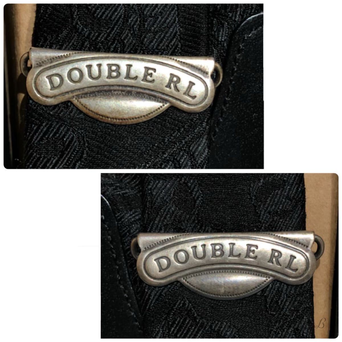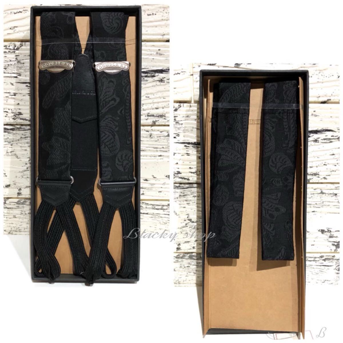 RRL ラルフローレン サスペンダー 未使用 タグ 箱付き ブラック ロゴ ペイズリー 牛革 絹 ブレードエンド ボタン留め レザー 絹 シルク ②