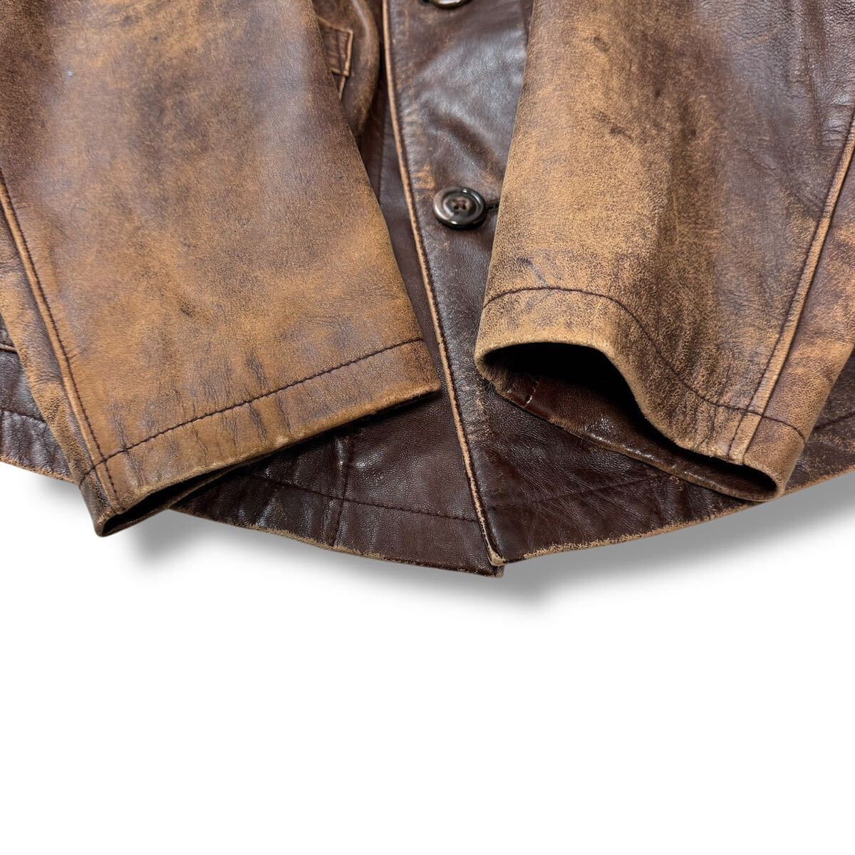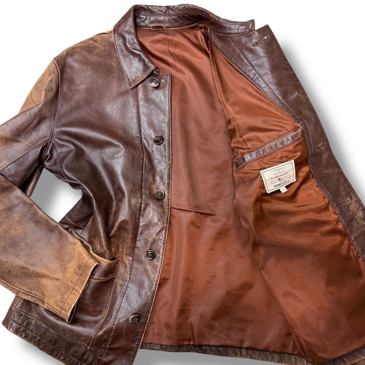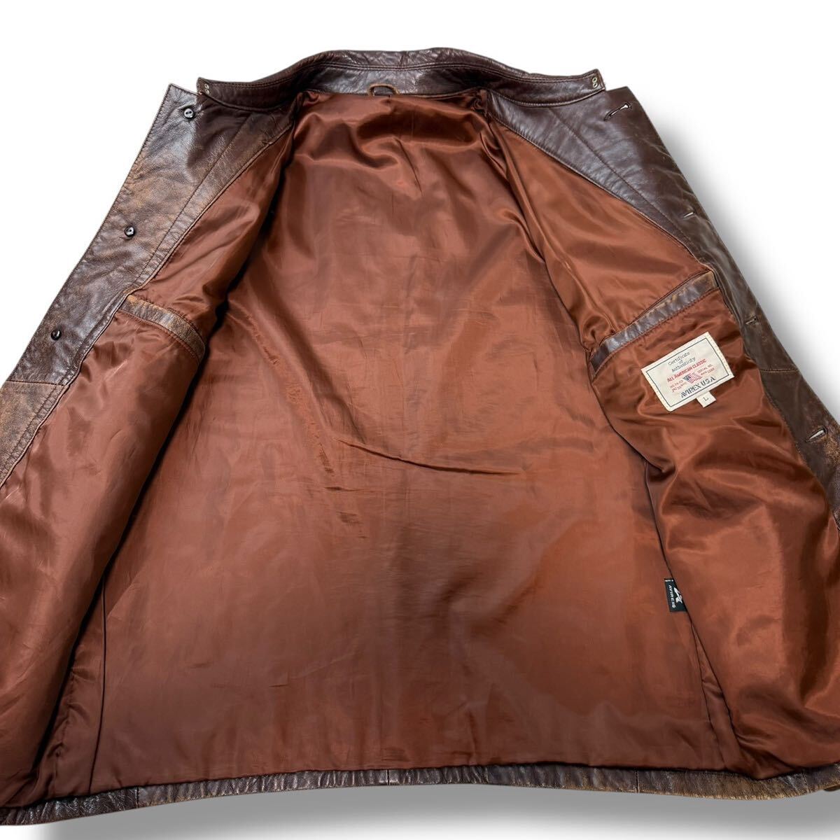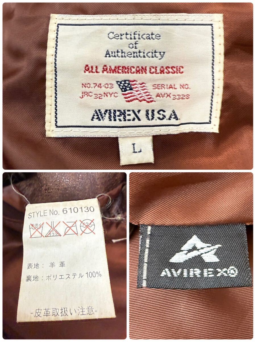 1113【希少L】 アヴィレックス AVIREX レザージャケット カバーオール カーコート 羊革 ラムレザー ブラウン 本革 ジャケット シープスキン