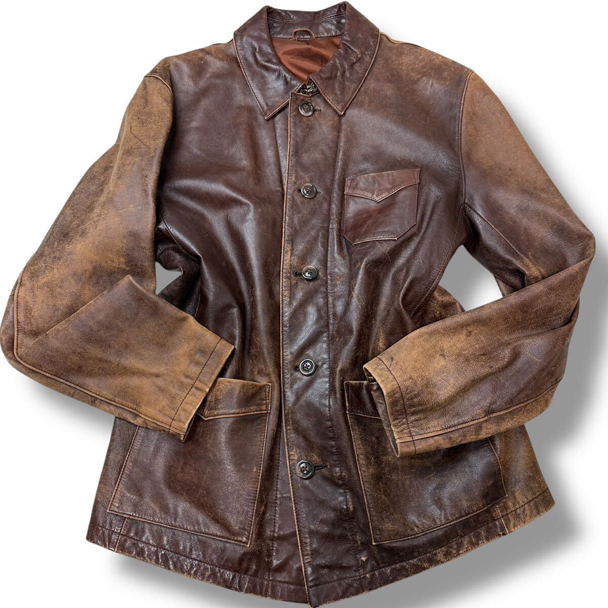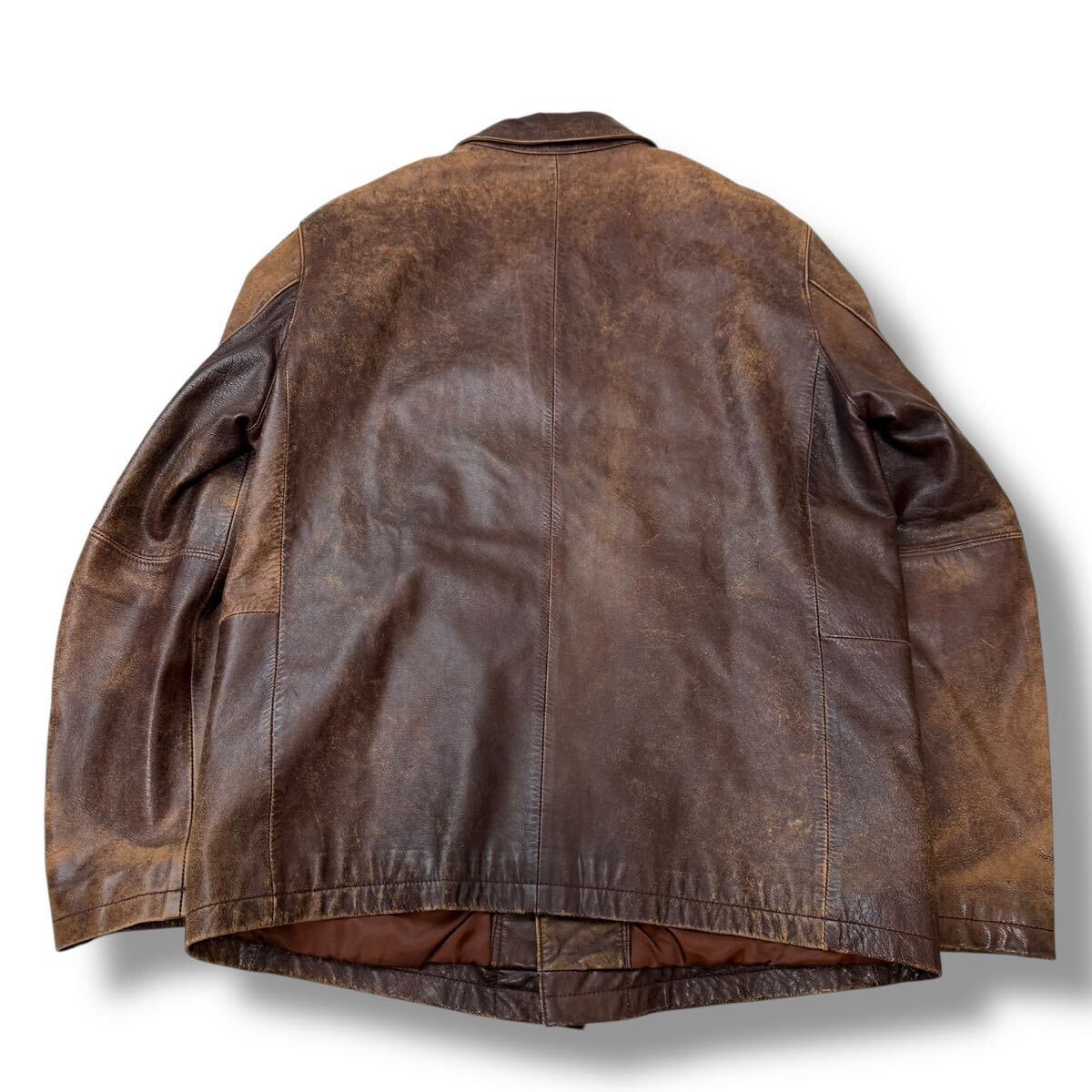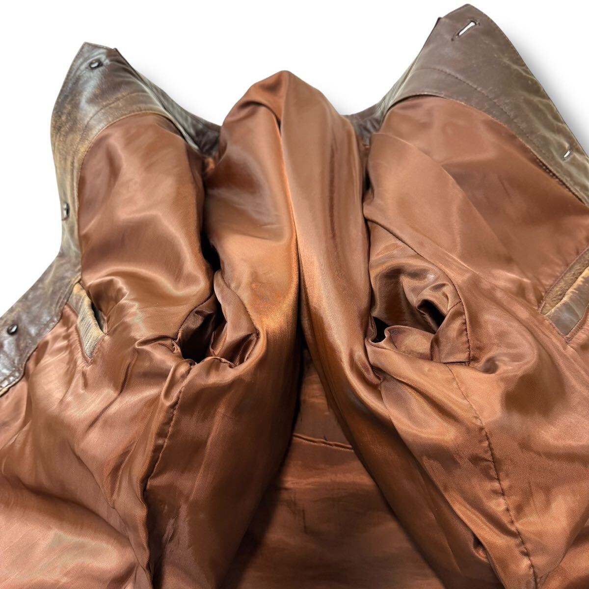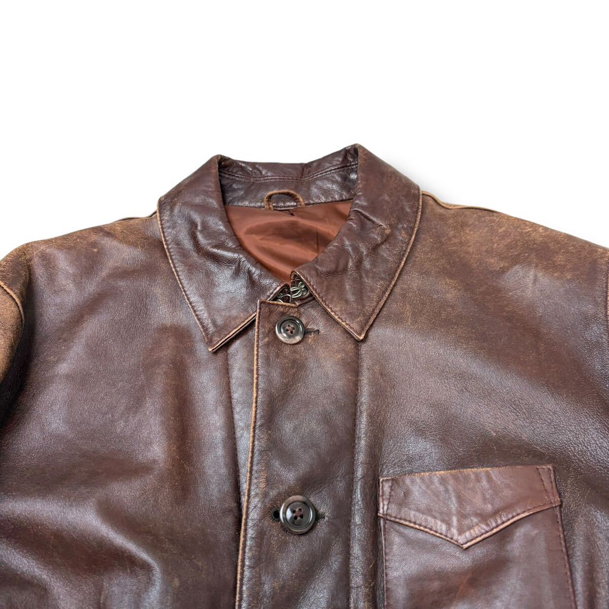 1113【希少L】 アヴィレックス AVIREX レザージャケット カバーオール カーコート 羊革 ラムレザー ブラウン 本革 ジャケット シープスキン