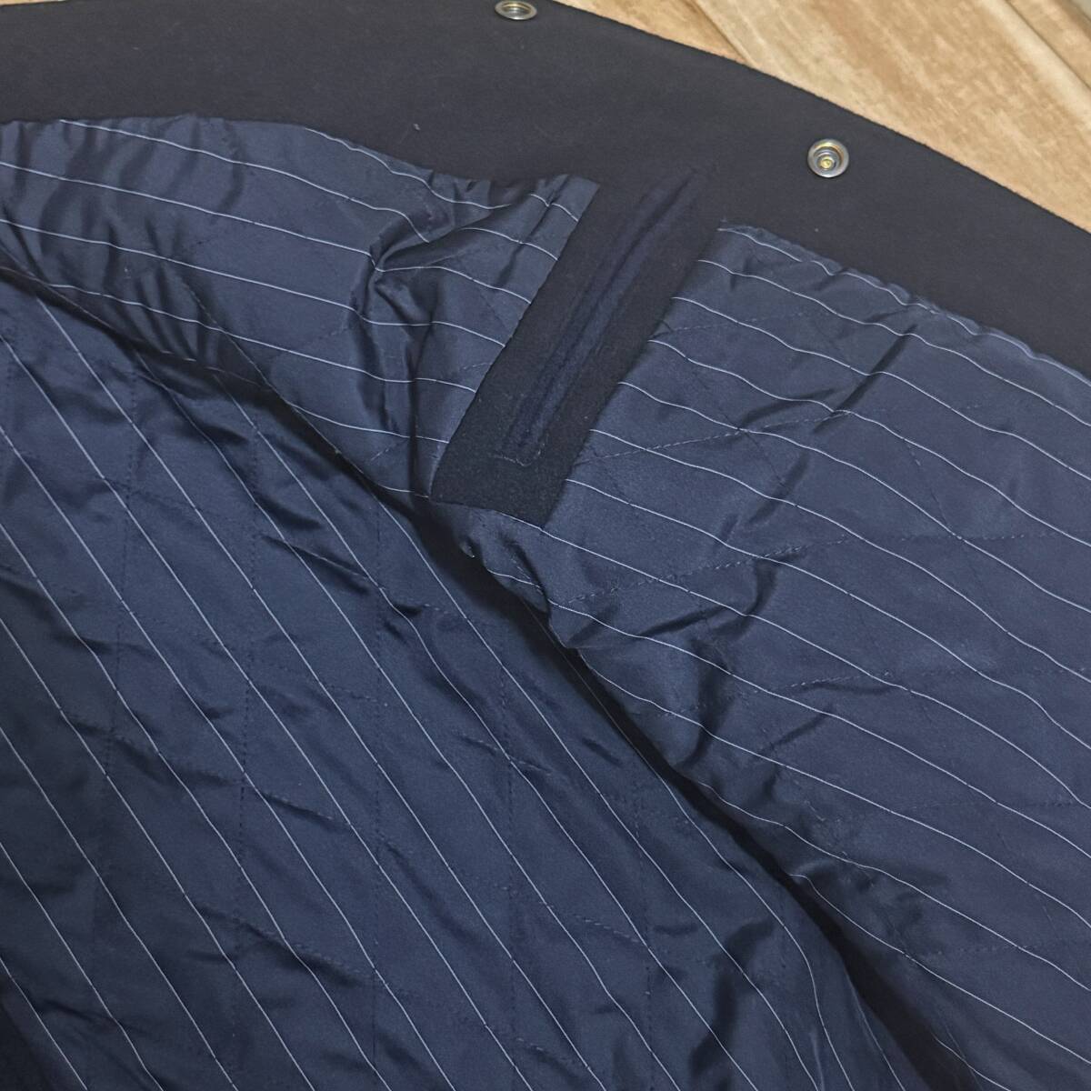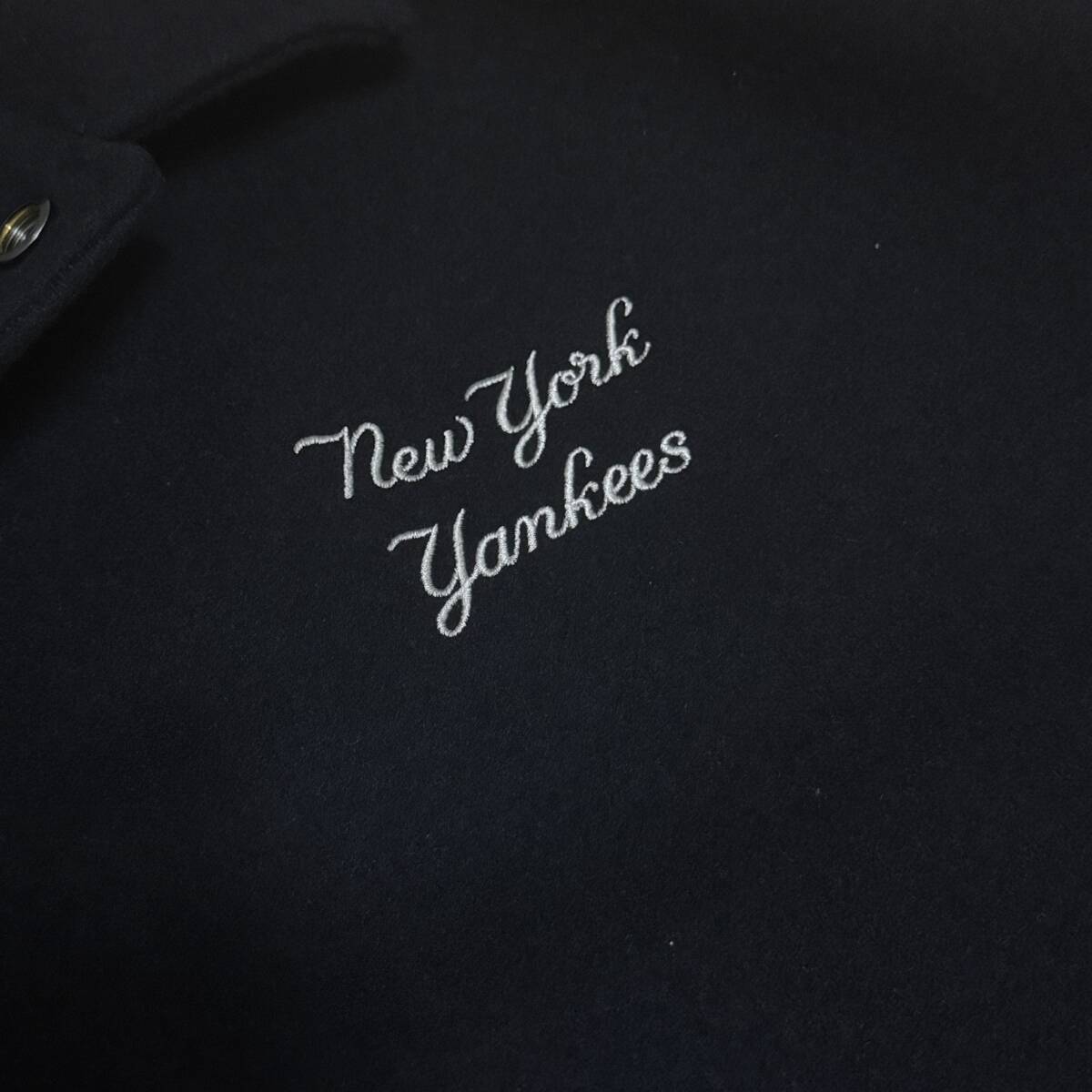 ニューヨーク・ヤンキースのアーカイブロゴを背面に刺繍でデザインしたメルトンヴァーシティジャケット。