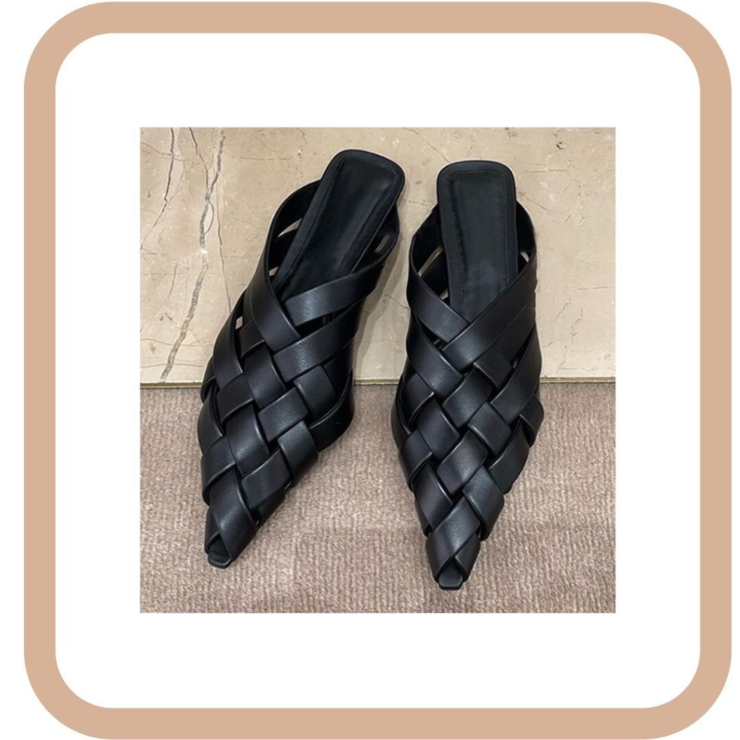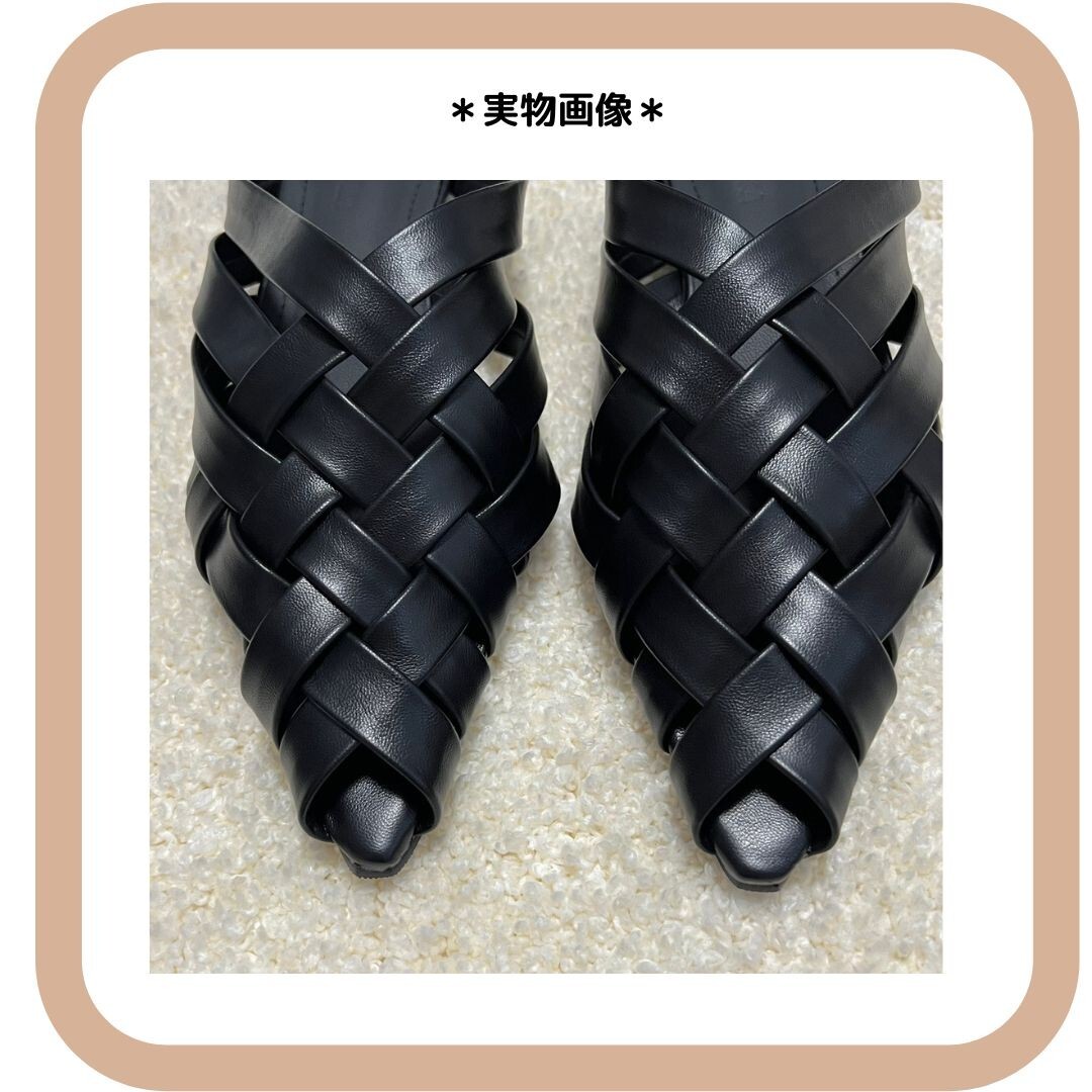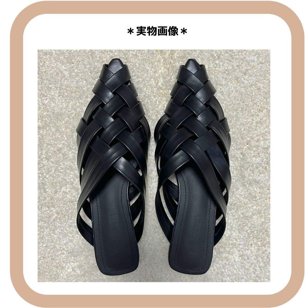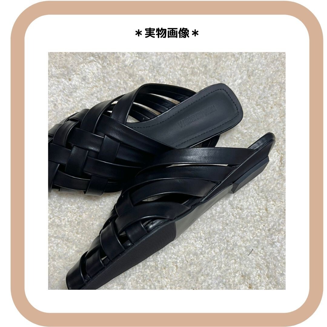 レザー編み込みサンダル フラットミュール 黒38