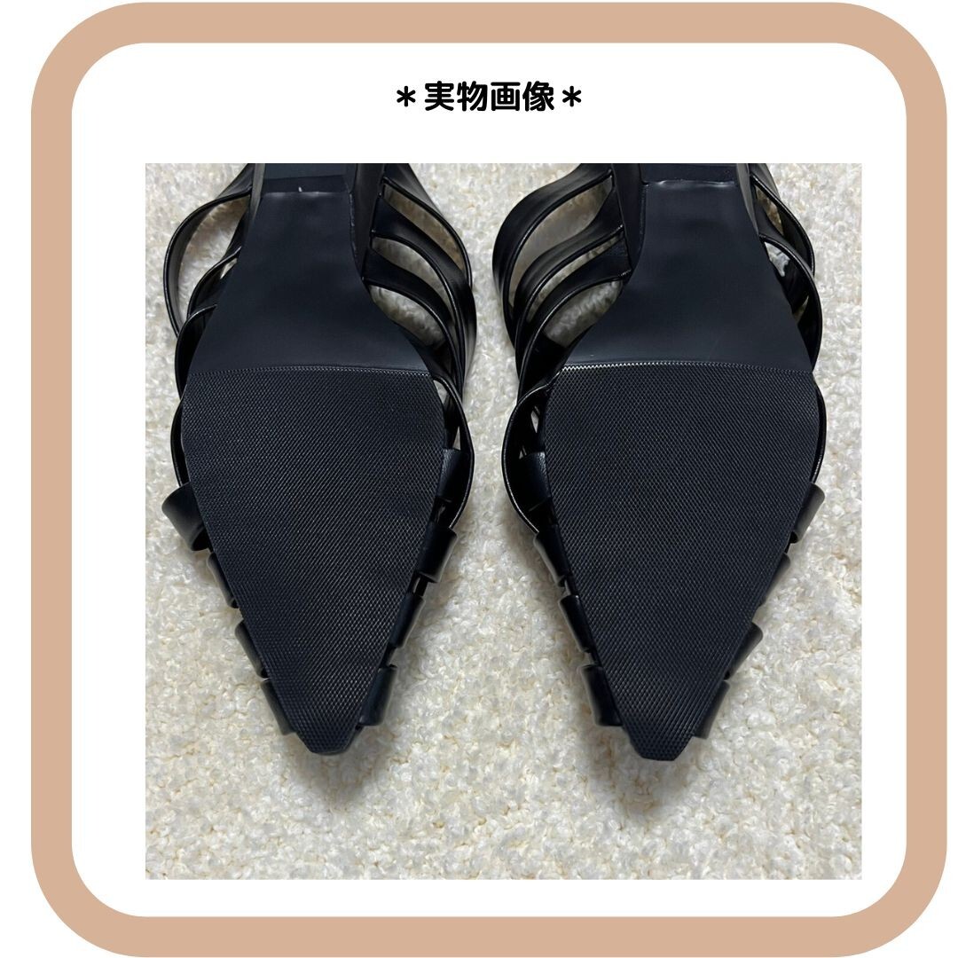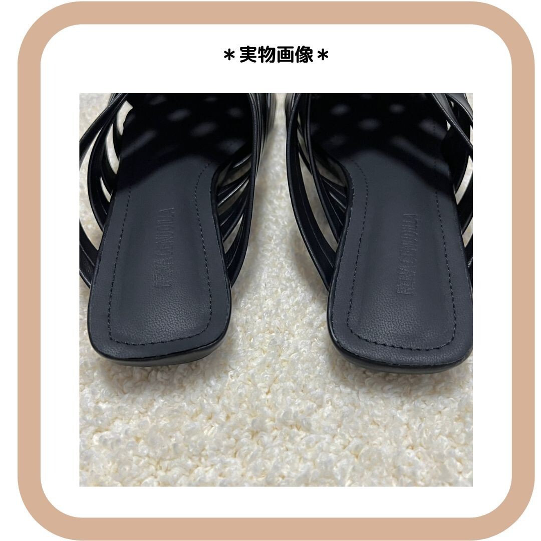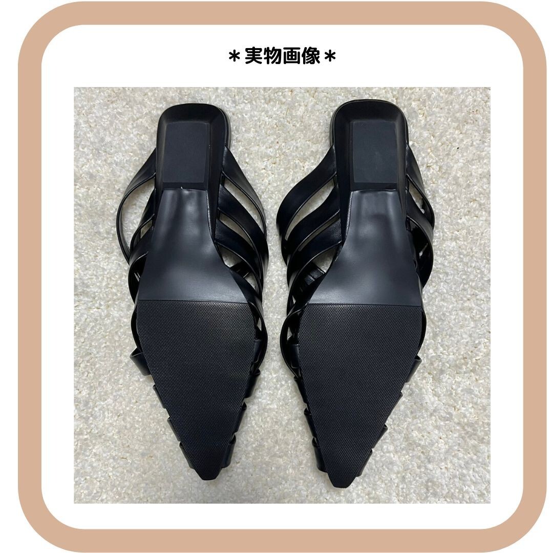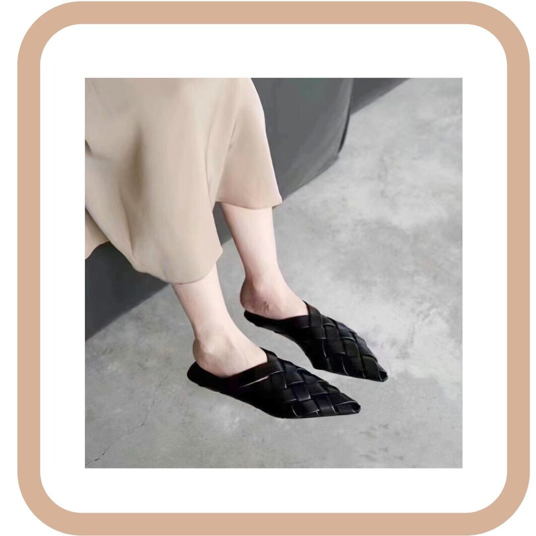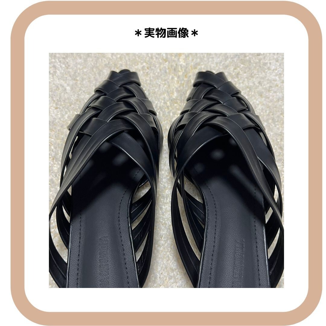 レザー編み込みサンダル フラットミュール 黒38