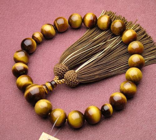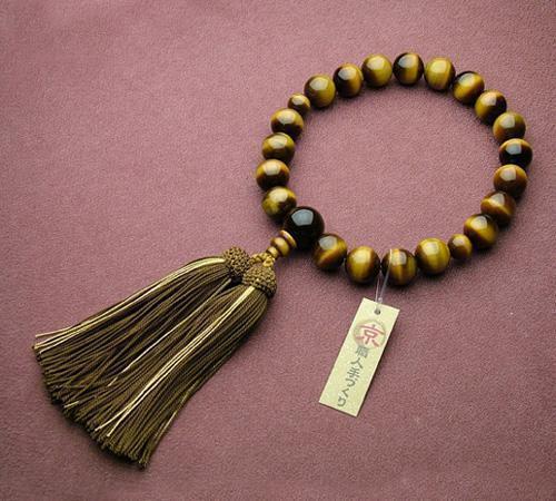 虎目石共仕立20珠(金糸入り)正絹頭付【匠・数珠/念珠[男性用]】