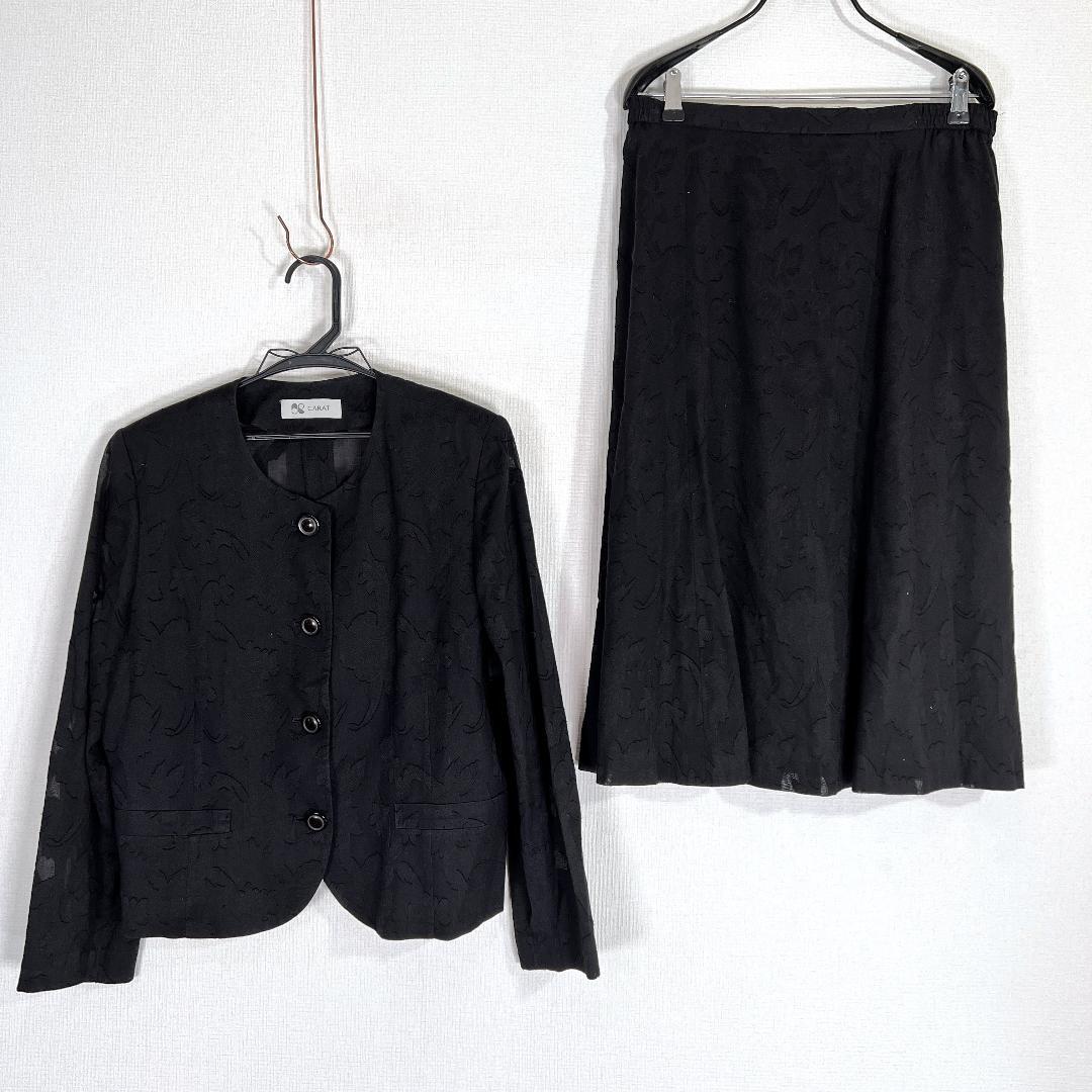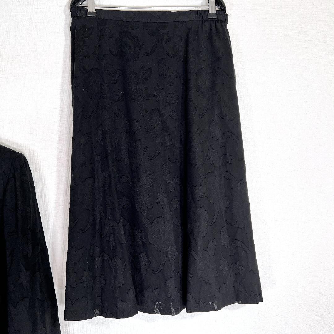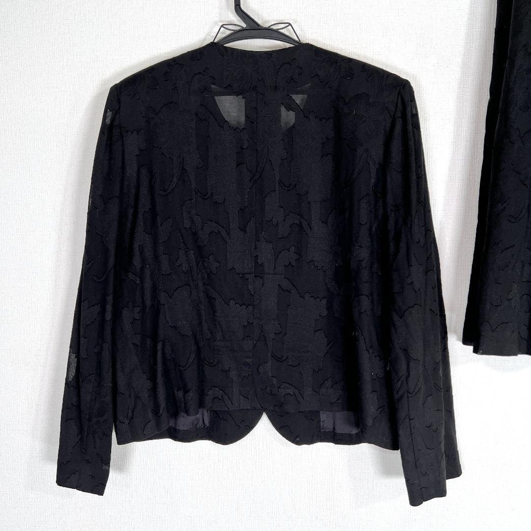 【昭和レトロ】黒 ブラック 刺繍デザイン フォーマルスーツ 上下セット セットアップ 女性用 レディース 婦人服 Lサイズ【c016】
