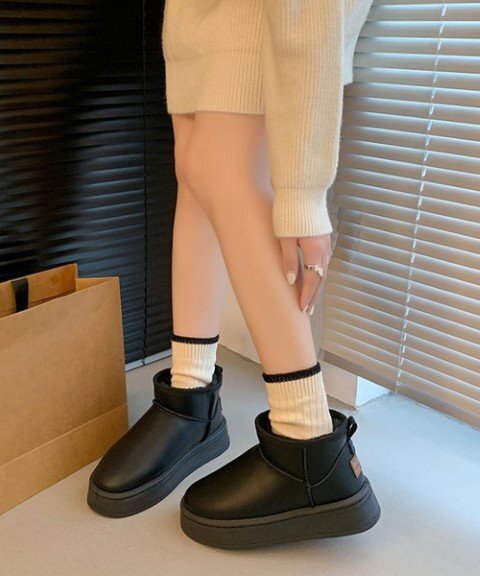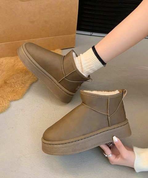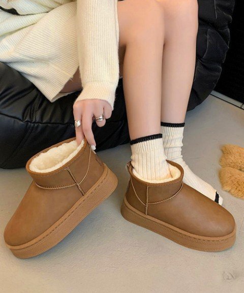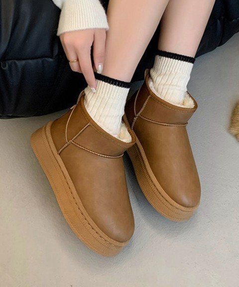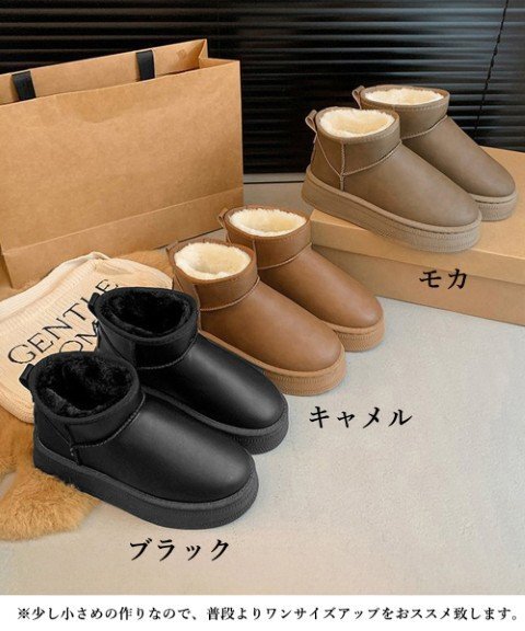 防寒ブーツもこもこ ボアシューズ 保温 美脚 モカシン厚底