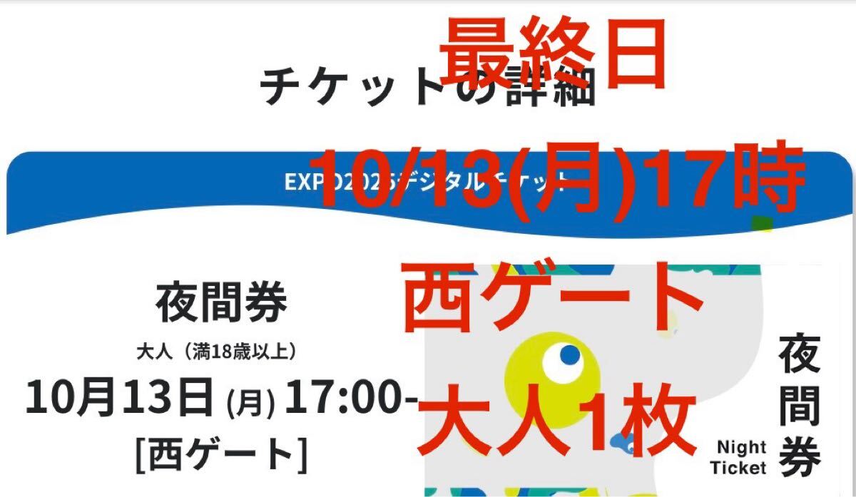 ◆受け取りには万博のIDが必要となります。サポートはできませんので、ご自身で電子チケット受け入れ登録できる方のみお願い致します。