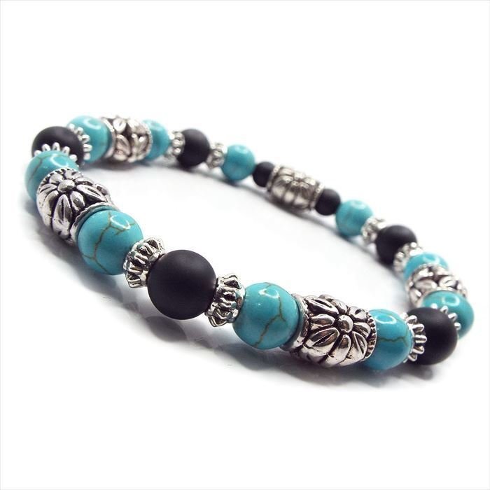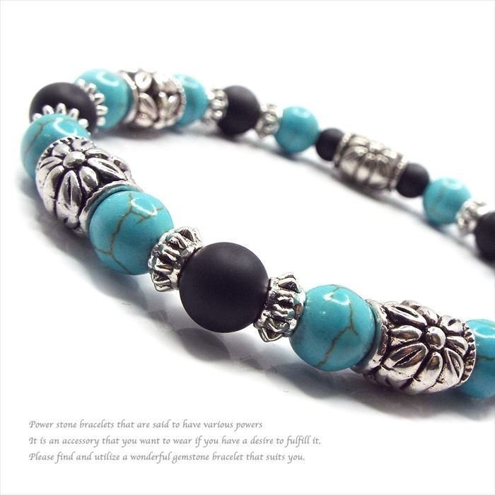 【STONE KITCHEN 天然石 パワーストーン】 大人気の天然石・ターコイズとマットオニキスを組み合わせたブレスレット♪ 間にはアクセサリーパーツを挟み高級感あるデザインに仕上がっています☆ 仕事やプライベート時など、使うシーンを選ばない シックでスタイリッシュなブレスレットに仕上がりました!! 内周:約18cm サイズ:マットオニキス 約8mm・約6mm ターコイズ 練り 約8mm 1点 注意事項 ※金属部分は汗や汚れ等で変色する場合がございます。気になる場合は金属磨きや布等で軽くふき取る事をおすすめします。 ※石の種類によっては、艶を引き出すことを目的として、ワックスや着色加工がされているものもあります。 ※表示のサイズは必ずしも最大値・最小値のサイズのものが入っているわけではございません。 ※天然石のため同じものでも色味・模様などが異なります。 ※照明の具合で実際とは色合いが異なる場合がございます。 また、天然素材特有のクラック・内包物を有する場合がございます。予めご了承下さい。 | |||