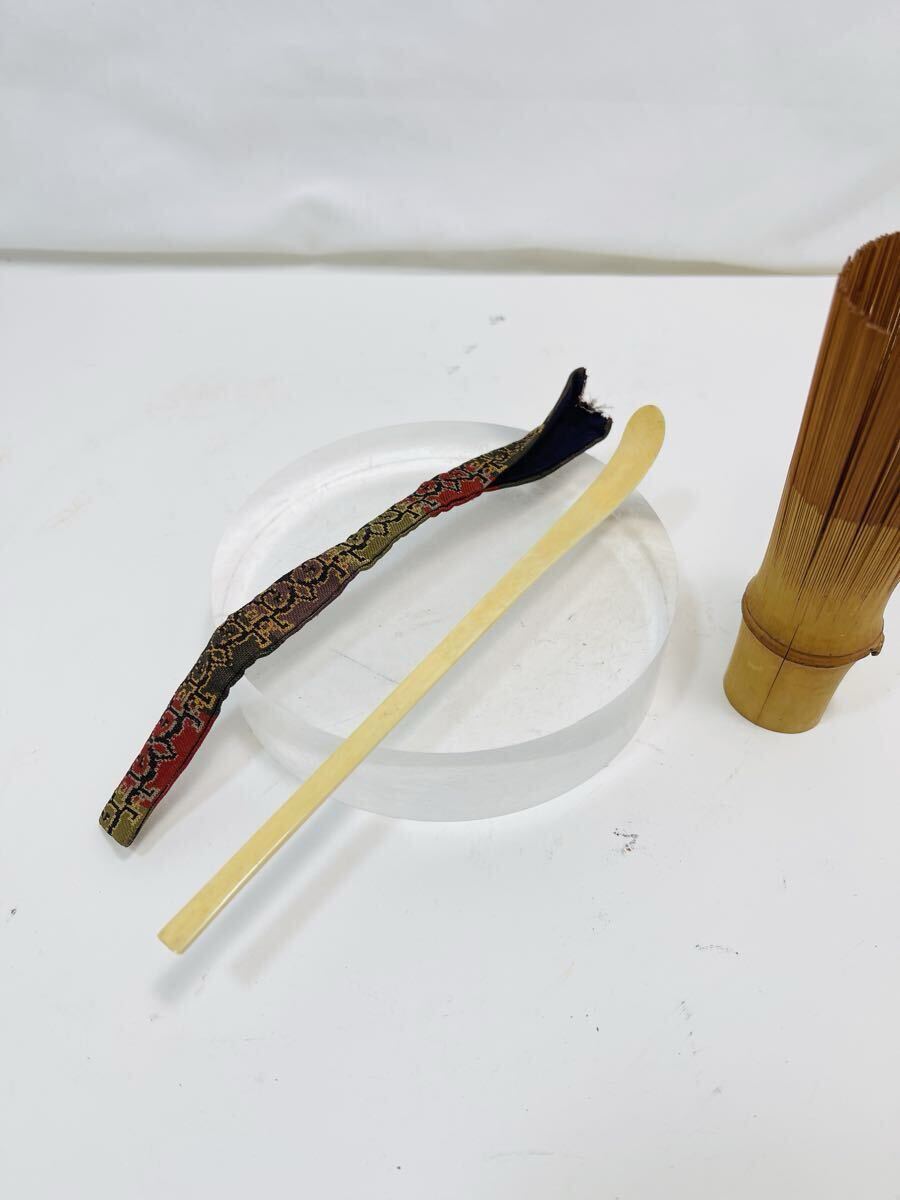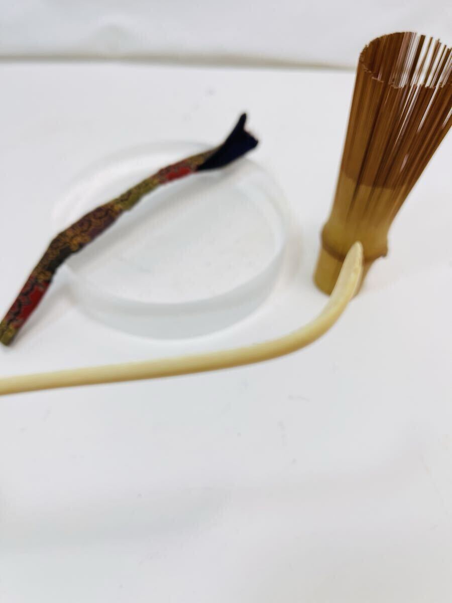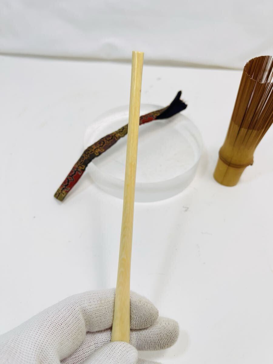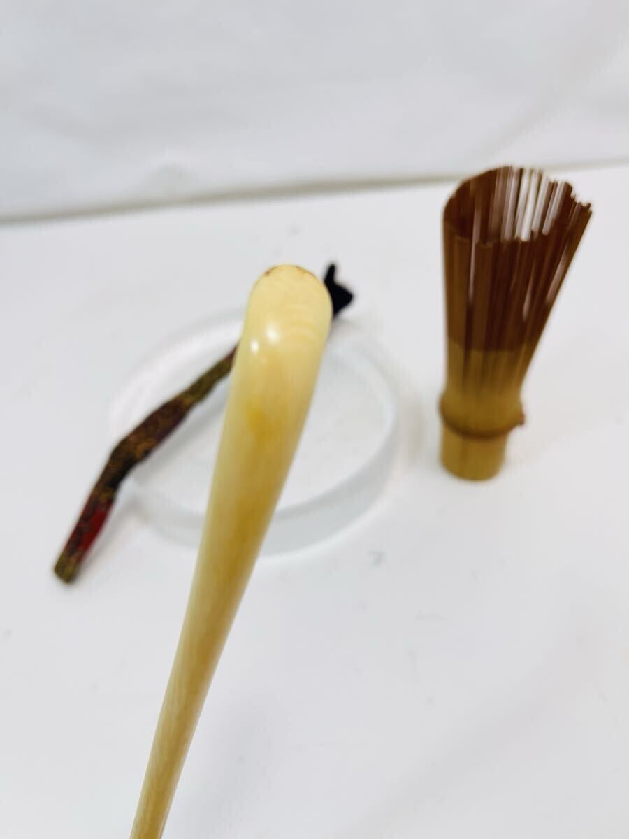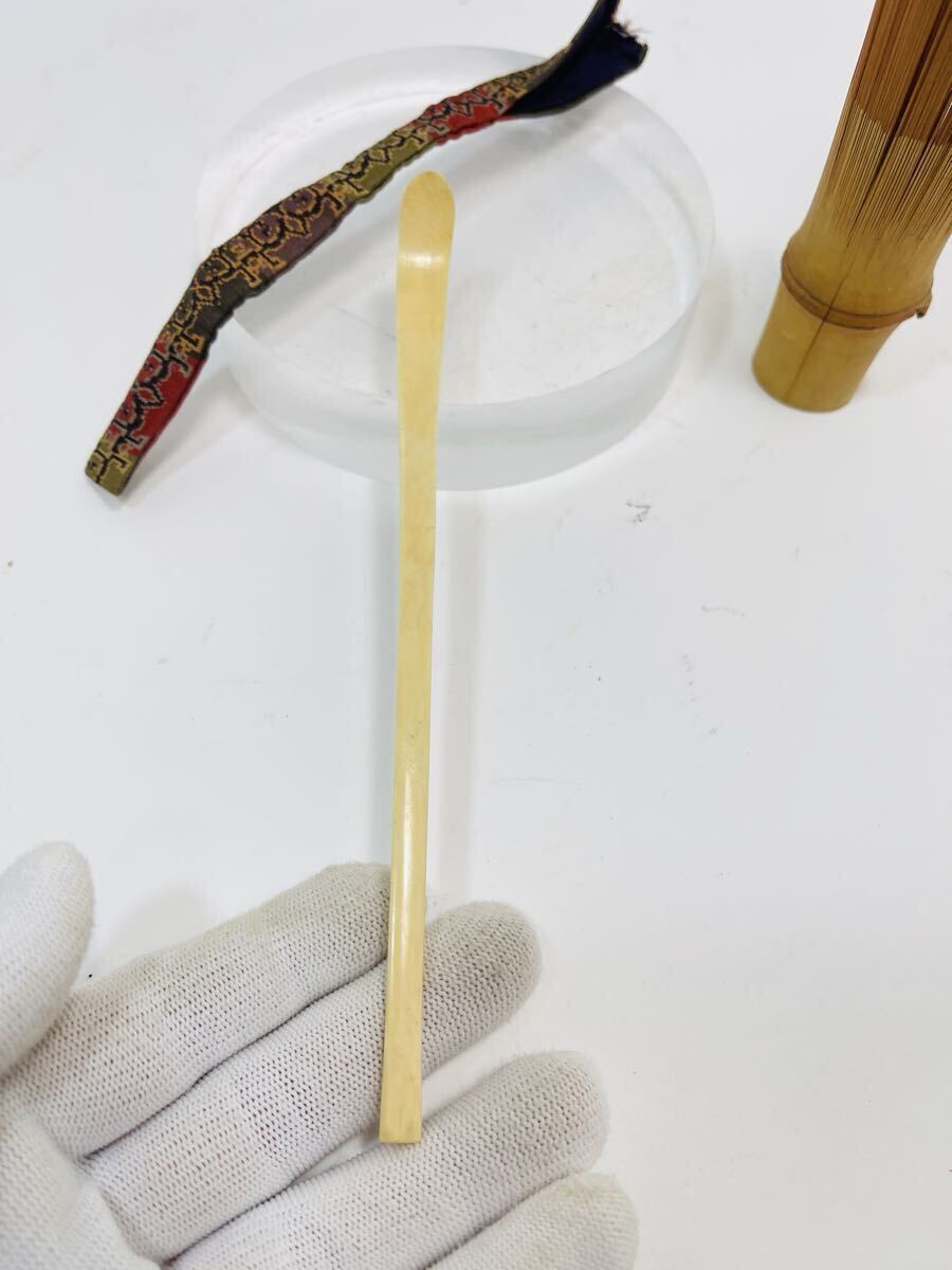 【B173】茶杓 アイボリー 天然素材 白材芯料 高級品 茶道具 東洋彫刻 ふくろ付き |