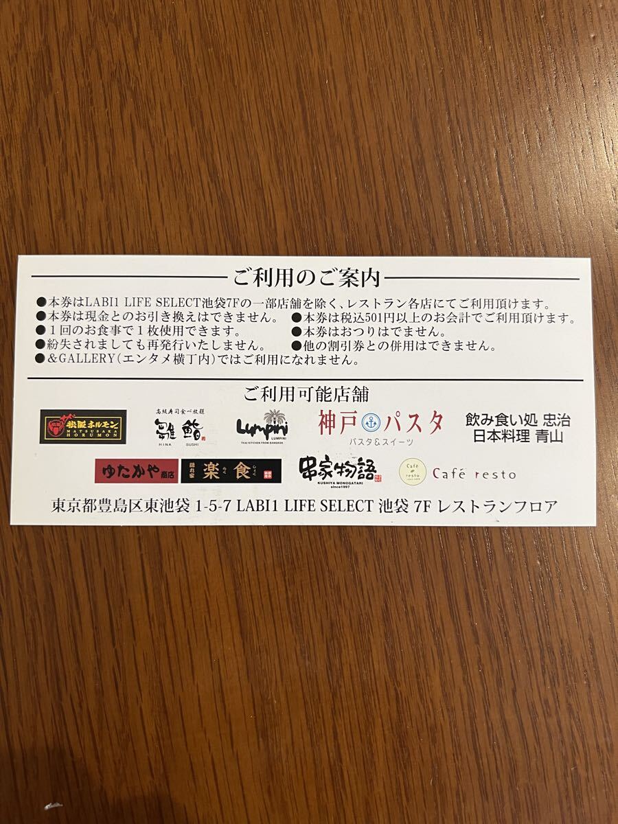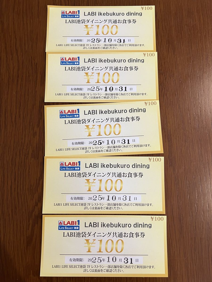 LABI池袋ダイニング共通お食事券100円券が5枚セットになったまとめ売りです。