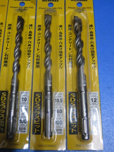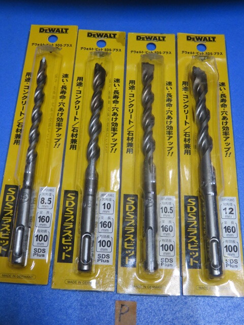 (P)DEWALT SDSプラスビット 8.5mm,10.0mm,10.5mm,12.0mm×160mm 4本組 送180 コンクリートドリル デウォルト 残1