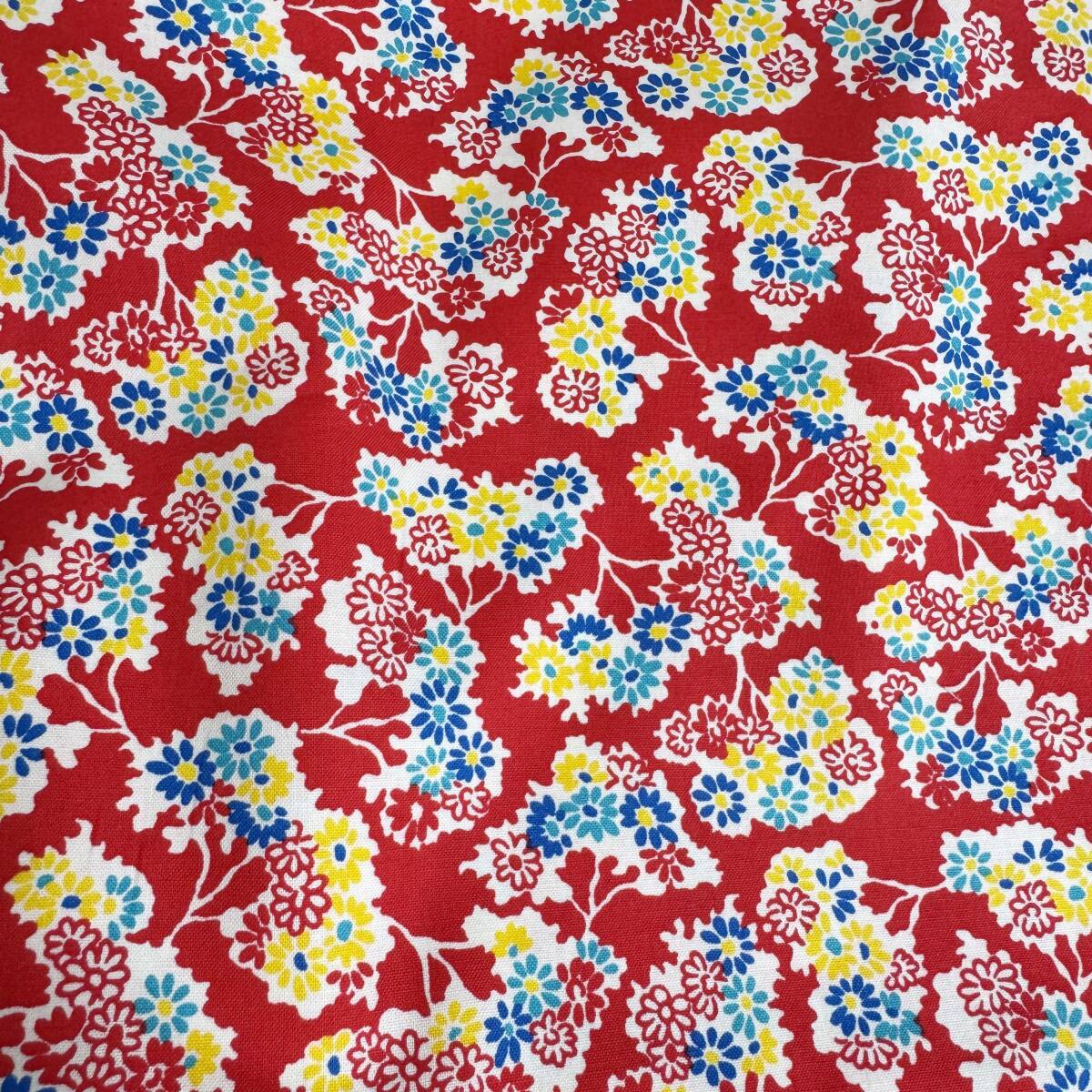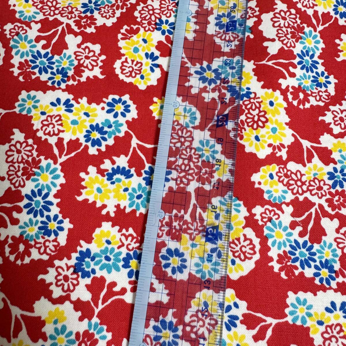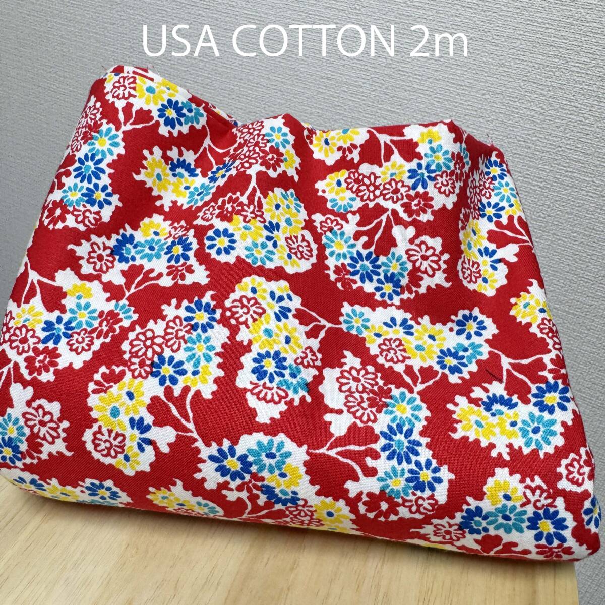 レトロ赤ベース花柄★USAコットン生地2m★レトロポップ★オールドアメリカン★
