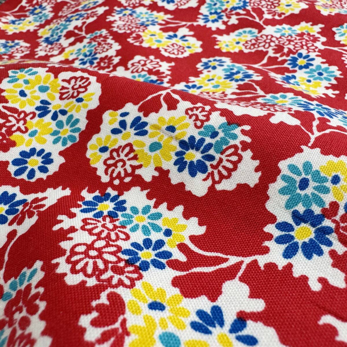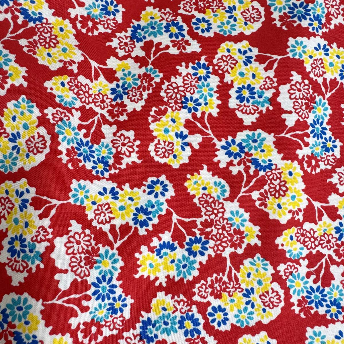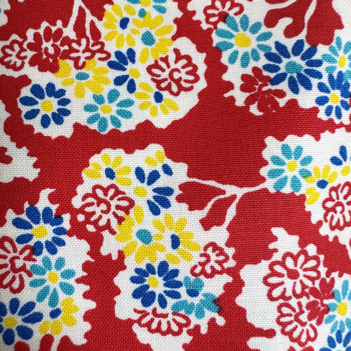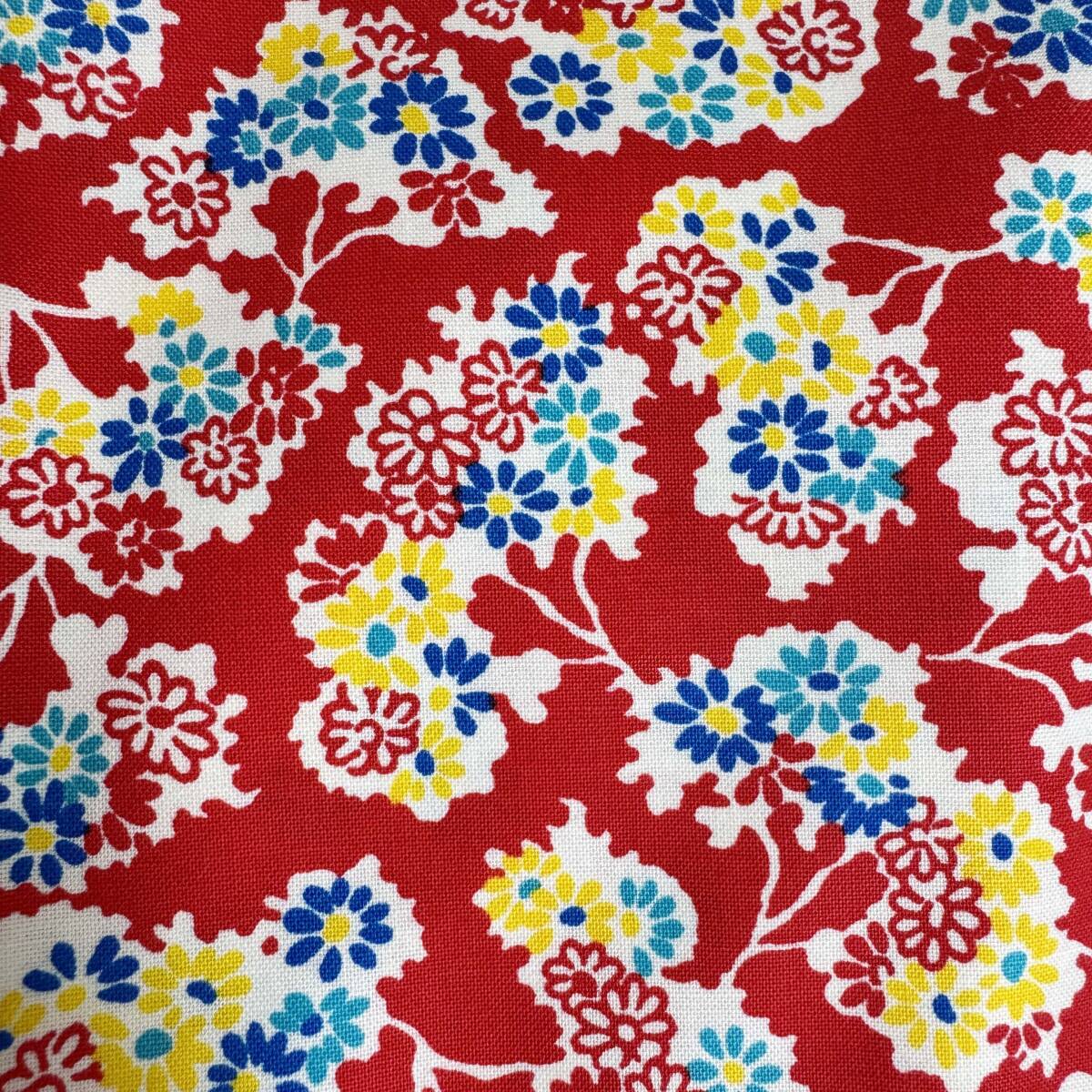 レトロ赤ベース花柄★USAコットン生地2m★レトロポップ★オールドアメリカン★