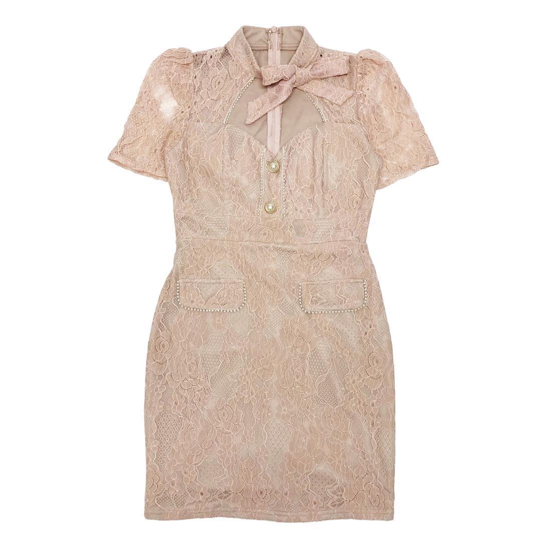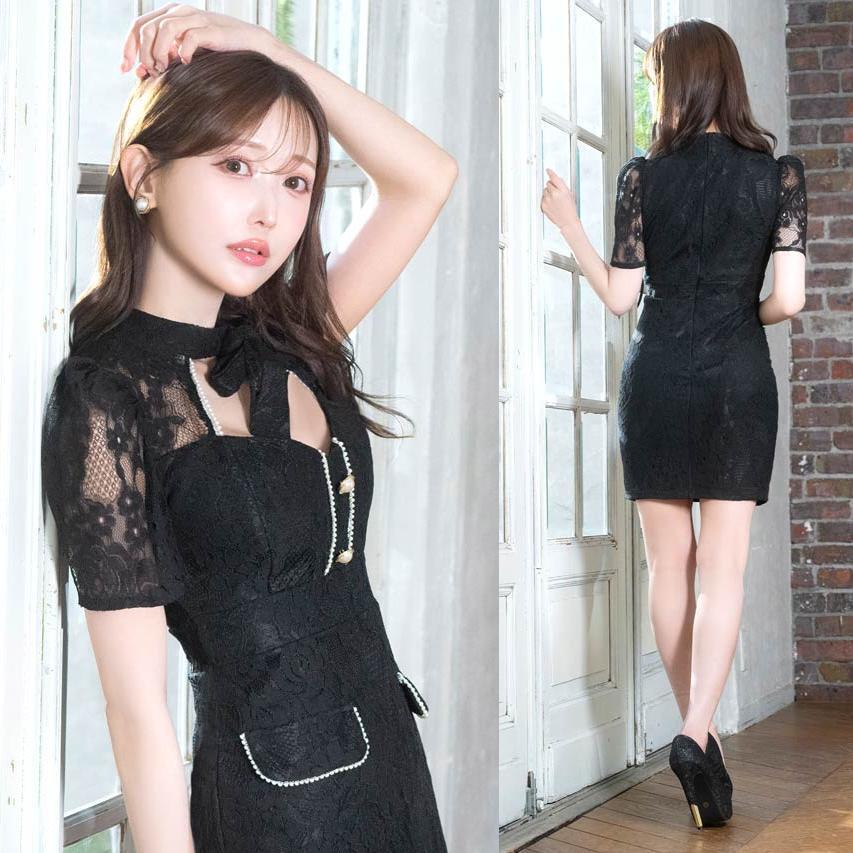 高級感漂うローズ柄のレース生地を全面にあしらったミニドレス。