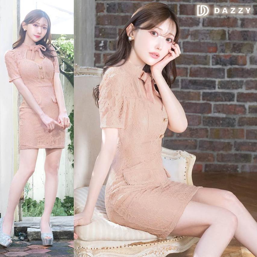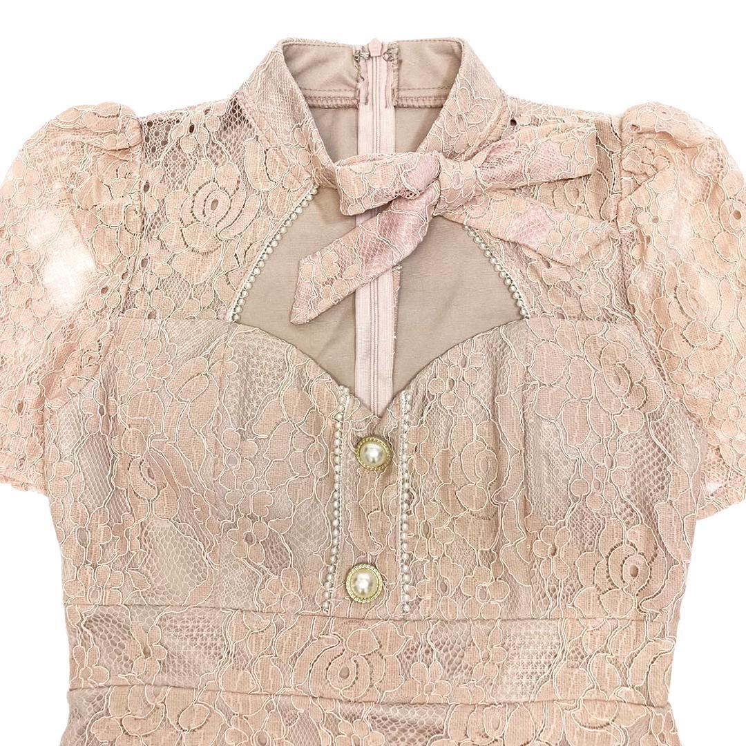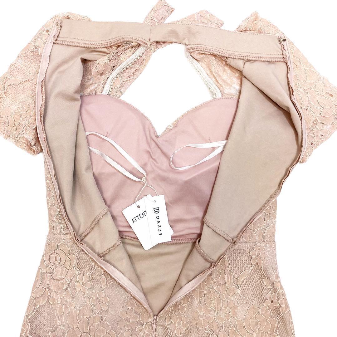 DAZZY デイジーストア ローズレースリボンネックホール半袖トミニドレス
