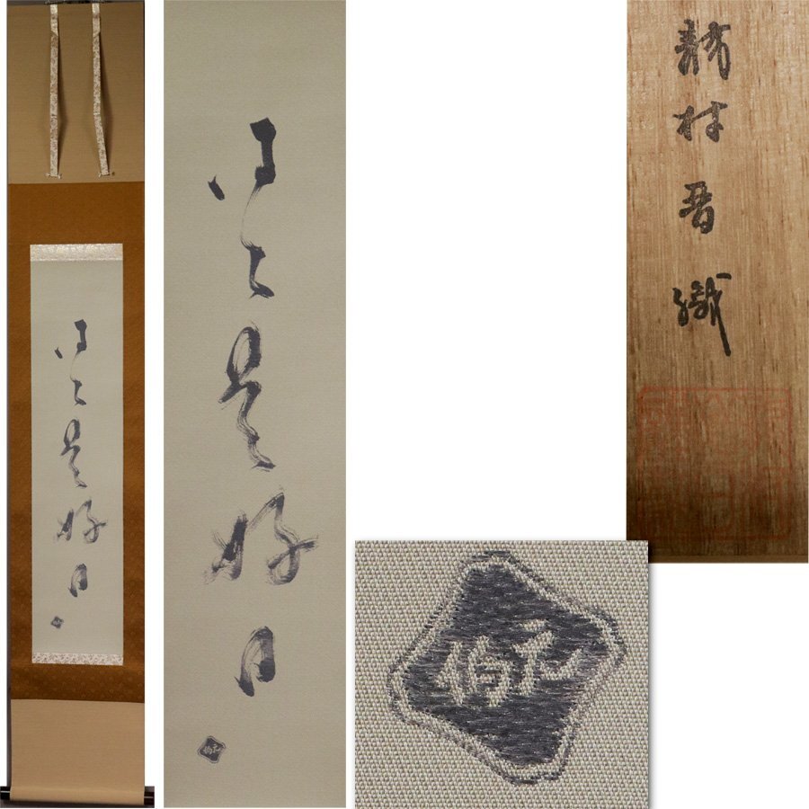 ■商品説明 下記、千宗旦によって製作された「日々是好日」の作品を、 下記、龍村晋の手により、織物にて、 文字を表現し再現したとても美しい作品です。 《 千宗旦 》 江戸前期の茶人。 利休の孫、少庵の長男。字は元叔のち元伯、咄々斎・不審庵と号する。 大徳寺の春屋宗園のもとで喝食となり、のち家督を譲られ、 わび茶を徹して千家流茶道を確立する。 万治元年(1658)歿、61才。 《 龍村晋(たつむらしん) 》 1908年 龍村平蔵の三男として大阪に生まれる。 1933年 東京帝国大学経済学部卒 日清紡入社。 1940年 次兄の入隊に伴い、日清紡退社。 龍村織物美術研究所に次長として入社。 1941年 前年に施行された七・七禁令を受け、平蔵の命のもと 「織物維持保存」をまとめる。 1950年 独立。 1981年 傳匠名錦帯百柄達成を記念して「第一回傳匠名錦展」を 港区縞のクレセントハウスに於いて開催 1989年 NHK教育テレビ『古代ロマンに魅せられて』に出演。 1995年 日本橋プラザに於いて米寿記念展開催。 1997年 傳匠名錦帯三百柄達成。 1997年12月 永眠(三百十柄目を作成中)・享年89歳。 ■織物 ■状 態 綺麗です。 ■寸 法 軸寸法/約160.0cm×約26.5cm。 本紙寸法/約 79.0cm×約18.5cm。 ■落 款 御覧の様な花押等あり。 ■箱 (龍村晋による)解説書・共箱。 【即決・送料無料】の表示商品に限り、 一部地域(北海道・沖縄)を除き、送料無料キャンペーンを実施しております。 ご希望の方は、お早めに入札して頂けます様、宜しくお願い致します。 【※※なお、作品に対して疑問や質問がある場合には、※※】 質問欄もしくは、ストア情報に当方の情報が記載されておりますので、こちらをクリックしてお問い合わせ下さい。 宜しくお願い致します。 |