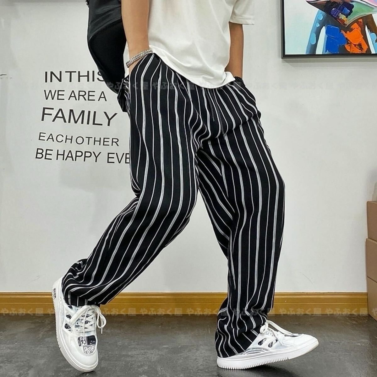 伸縮性がありとても履きやすいストライプ柄のパンツです。