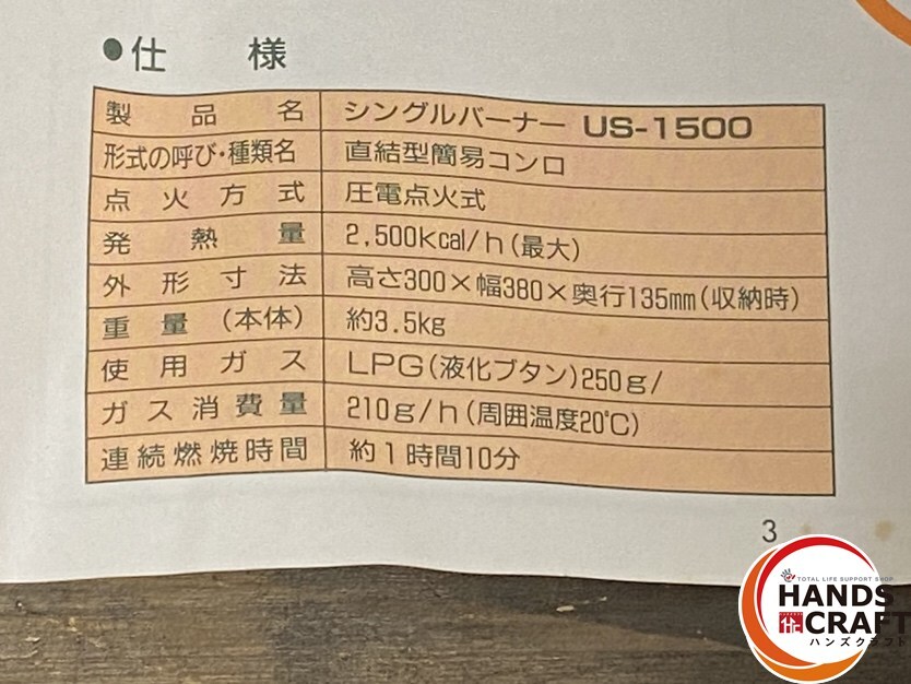 ●【中古品】UNIFLAME ユニフレーム US-1500 シングルバーナー 直結型簡易コンロ 説明書付 ※外箱にイタミ有、ガス容器別売