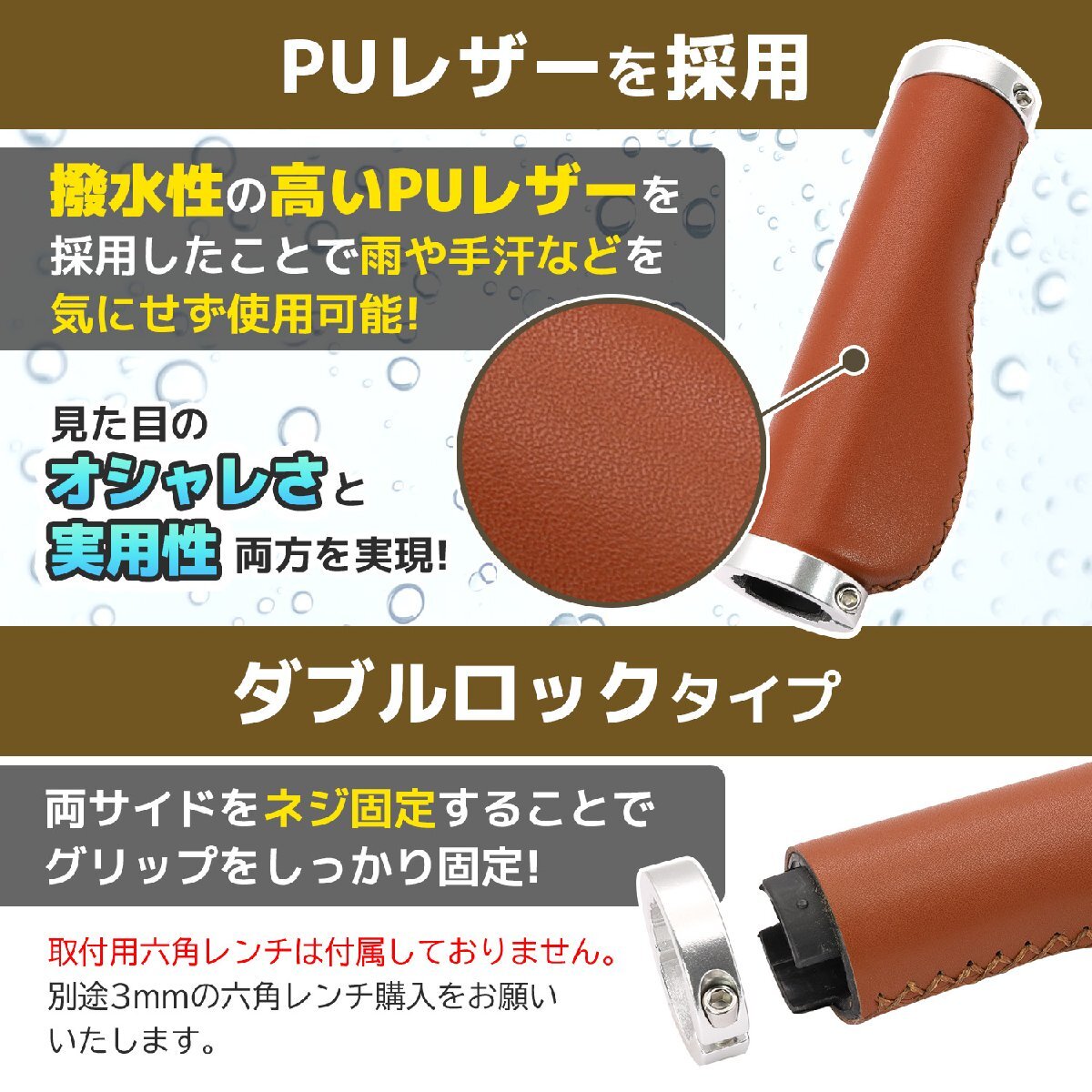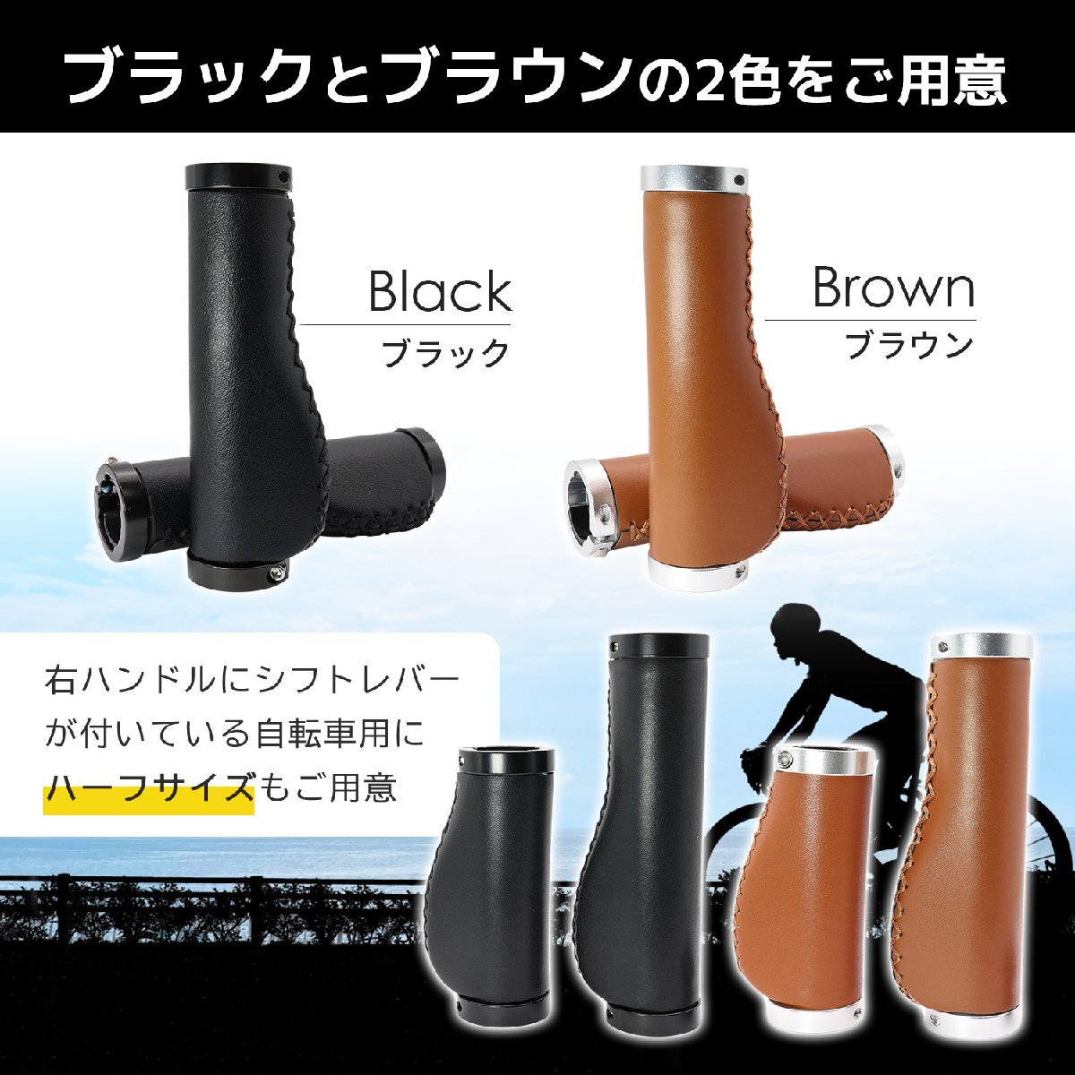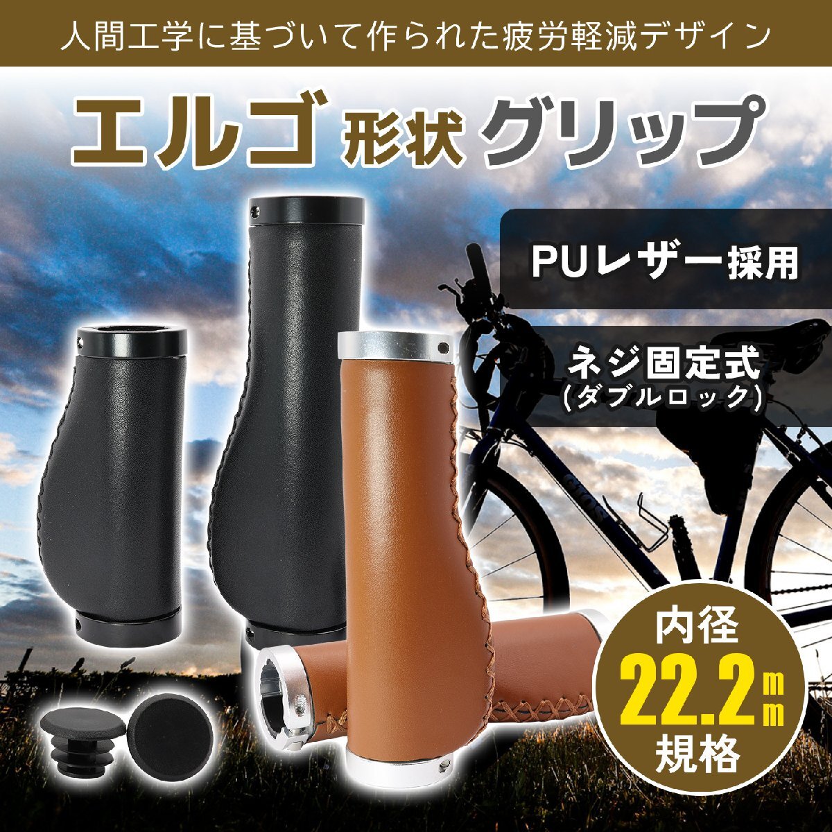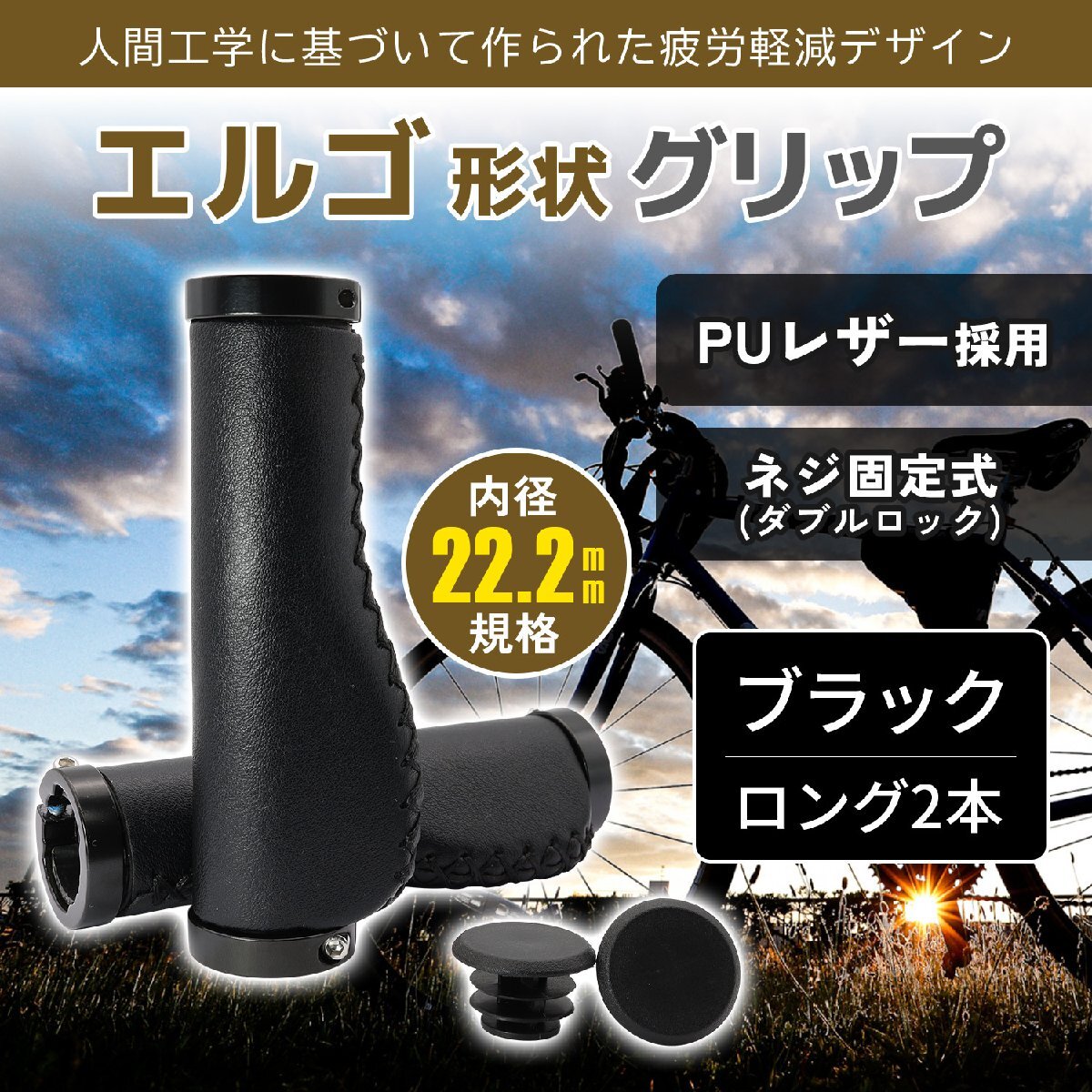 エルゴグリップ ブラック 左右セット クロスバイク 自転車 22.2 mm ハンドル PU レザー エルゴ グリップ ロング 交換 オシャレ 1-