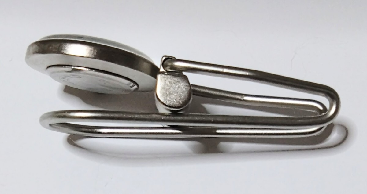 クリップ式で、67番目の写真の様に手帳やバインダーなどにクリップして使えます。またベルトに通してもいいです。