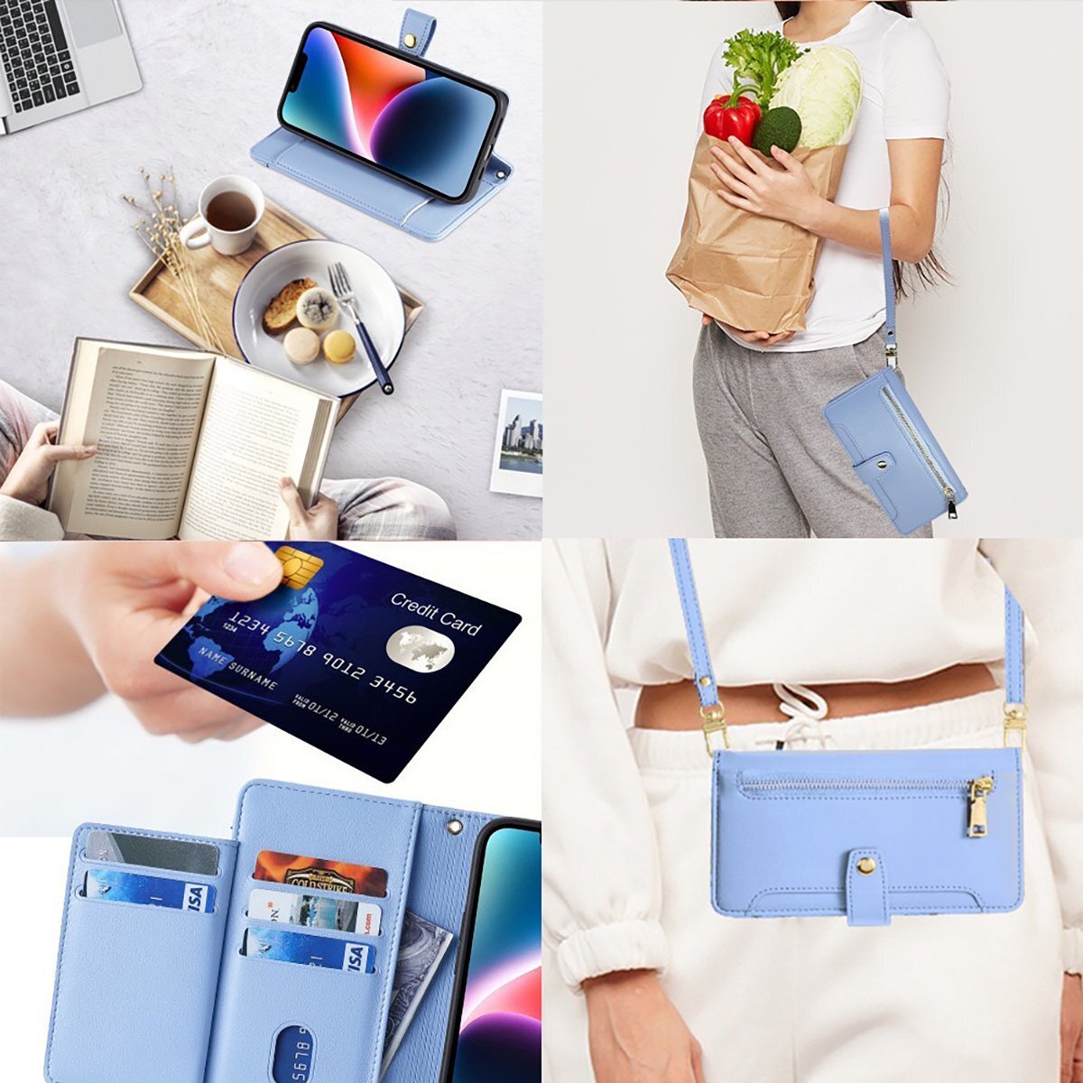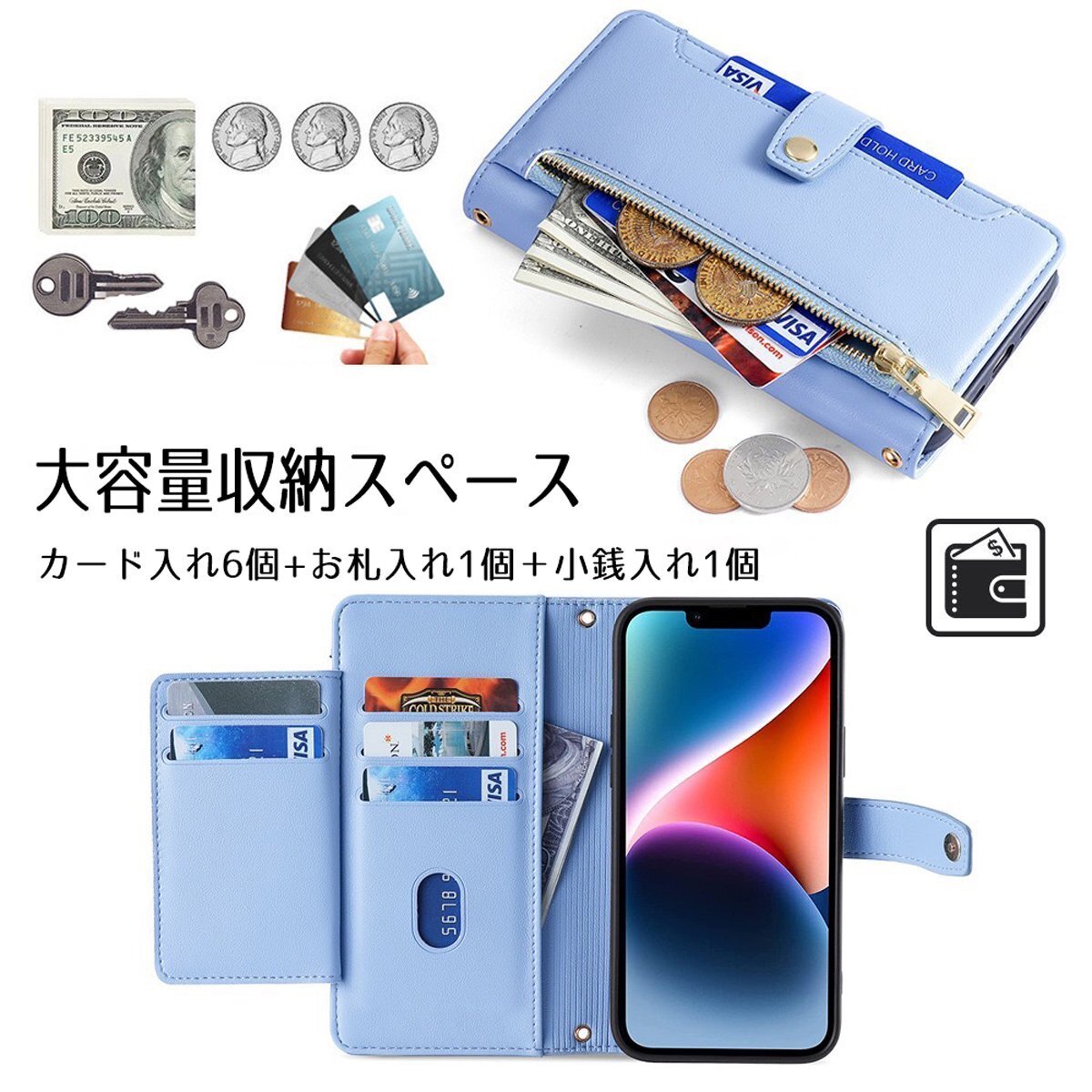 【高品質PUレザー素材のケースで耐衝撃】ショルダーバッグに!カードケース収納に!スマホスタンドとしても大活躍!耐衝撃&多機能、シンプルなデザインで使いやすい♪