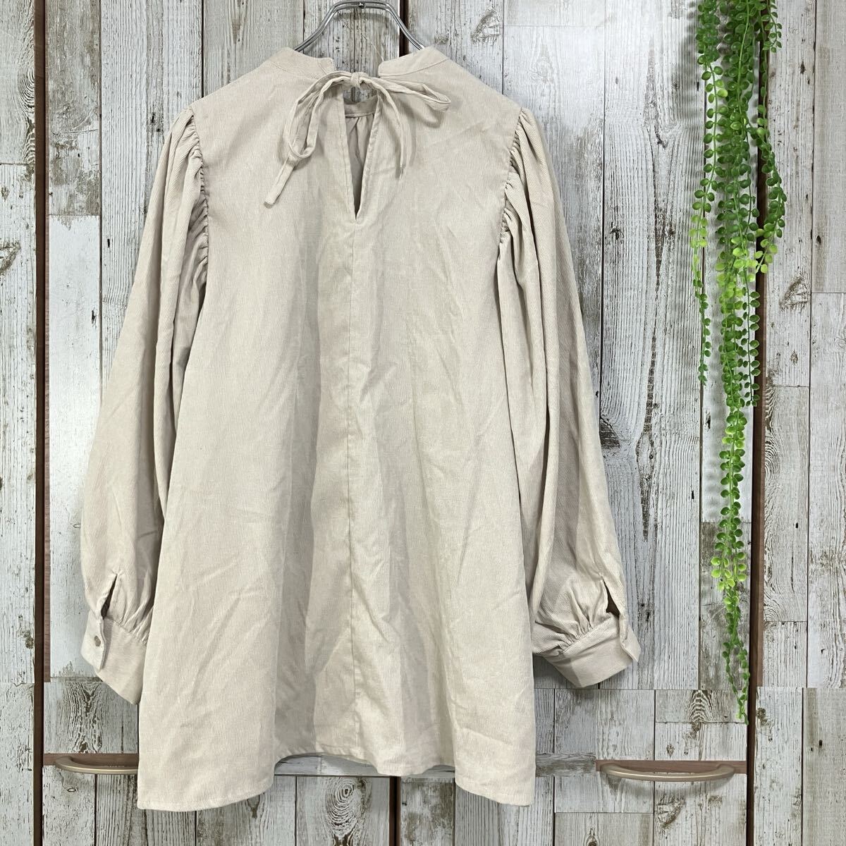 ☆OFALO オファロ☆美品☆チュニック カットソー コーデュロイ ボリュームスリーブ L レディース 長袖 アイボリー系 [送料無料] s6154