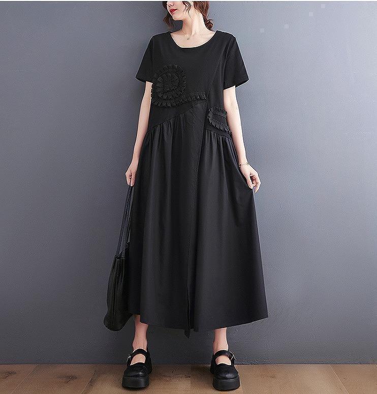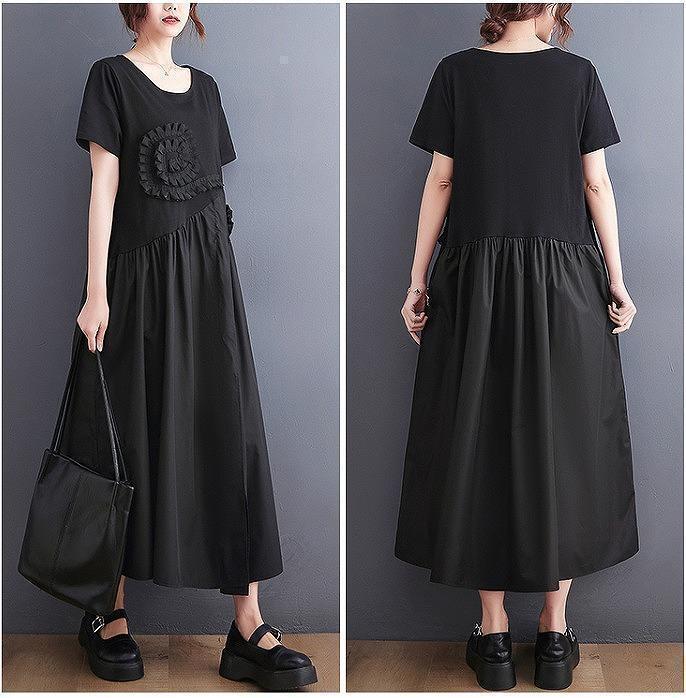 大きいサイズ レディース 春夏 ロング ワンピース 半袖